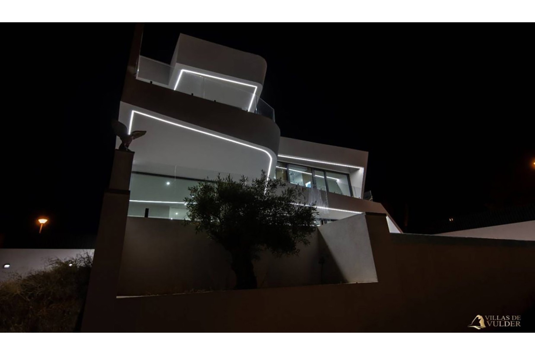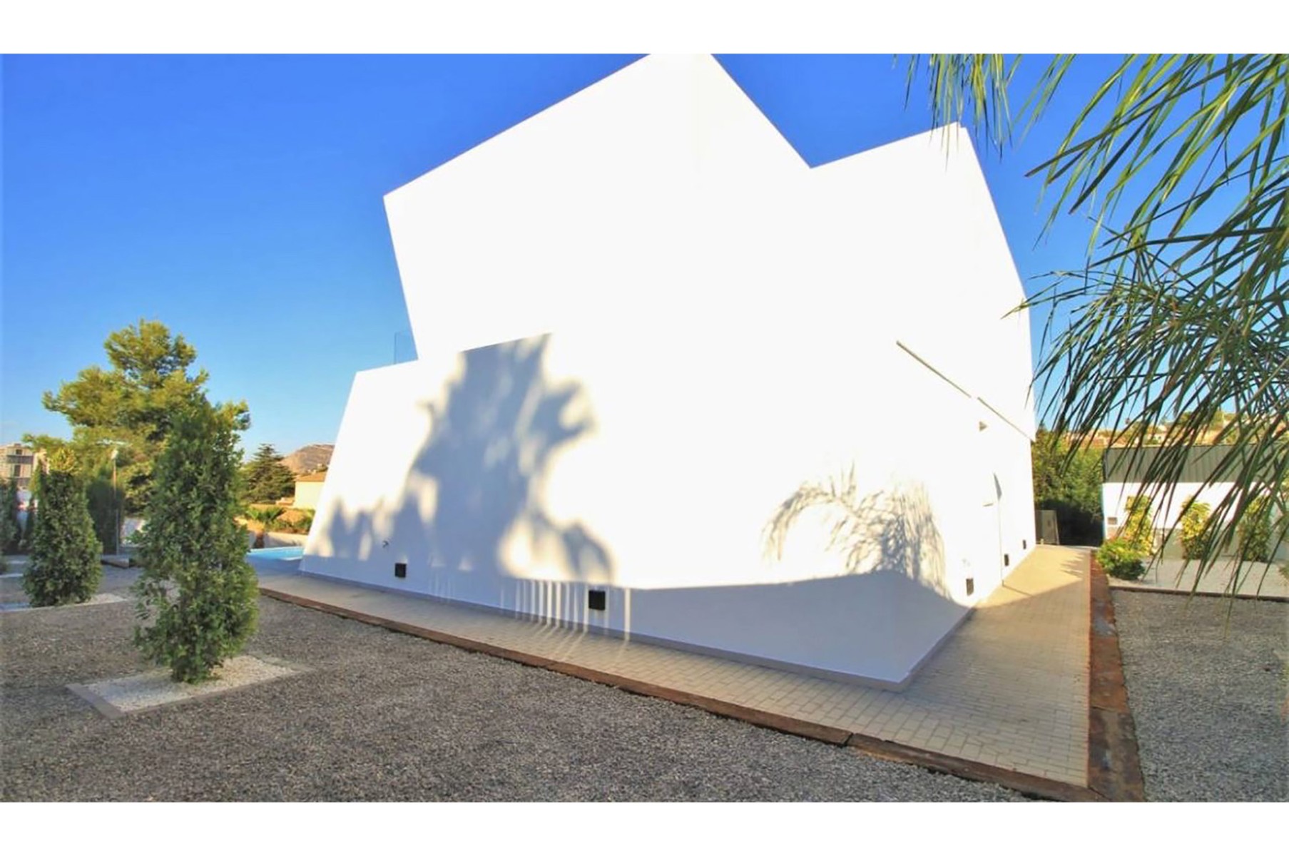 This villa is built on a plot of 922m2 in Calpe (Spain, Alicante) with a modern architectural style. The villa has different outdoor areas, large terr
