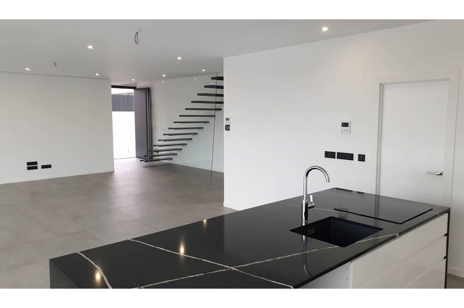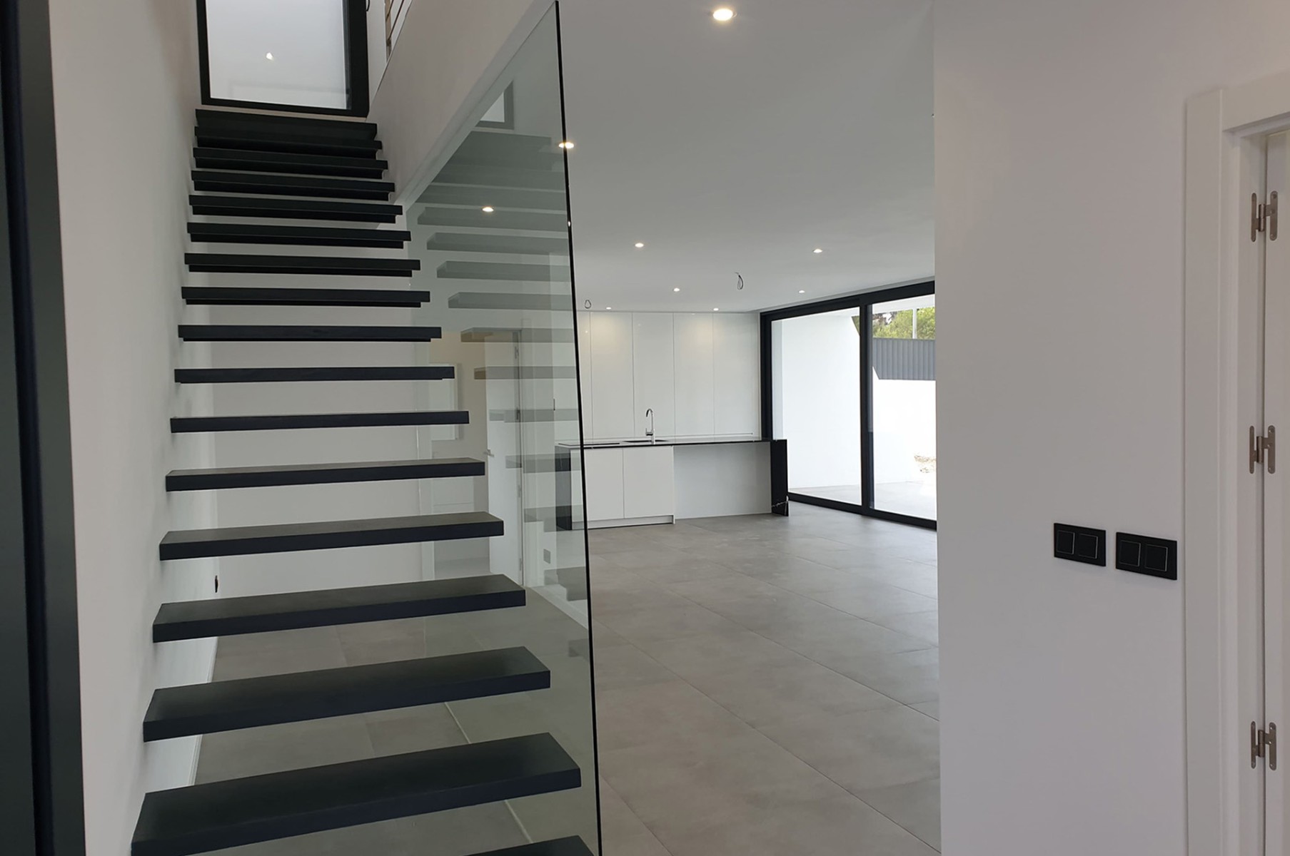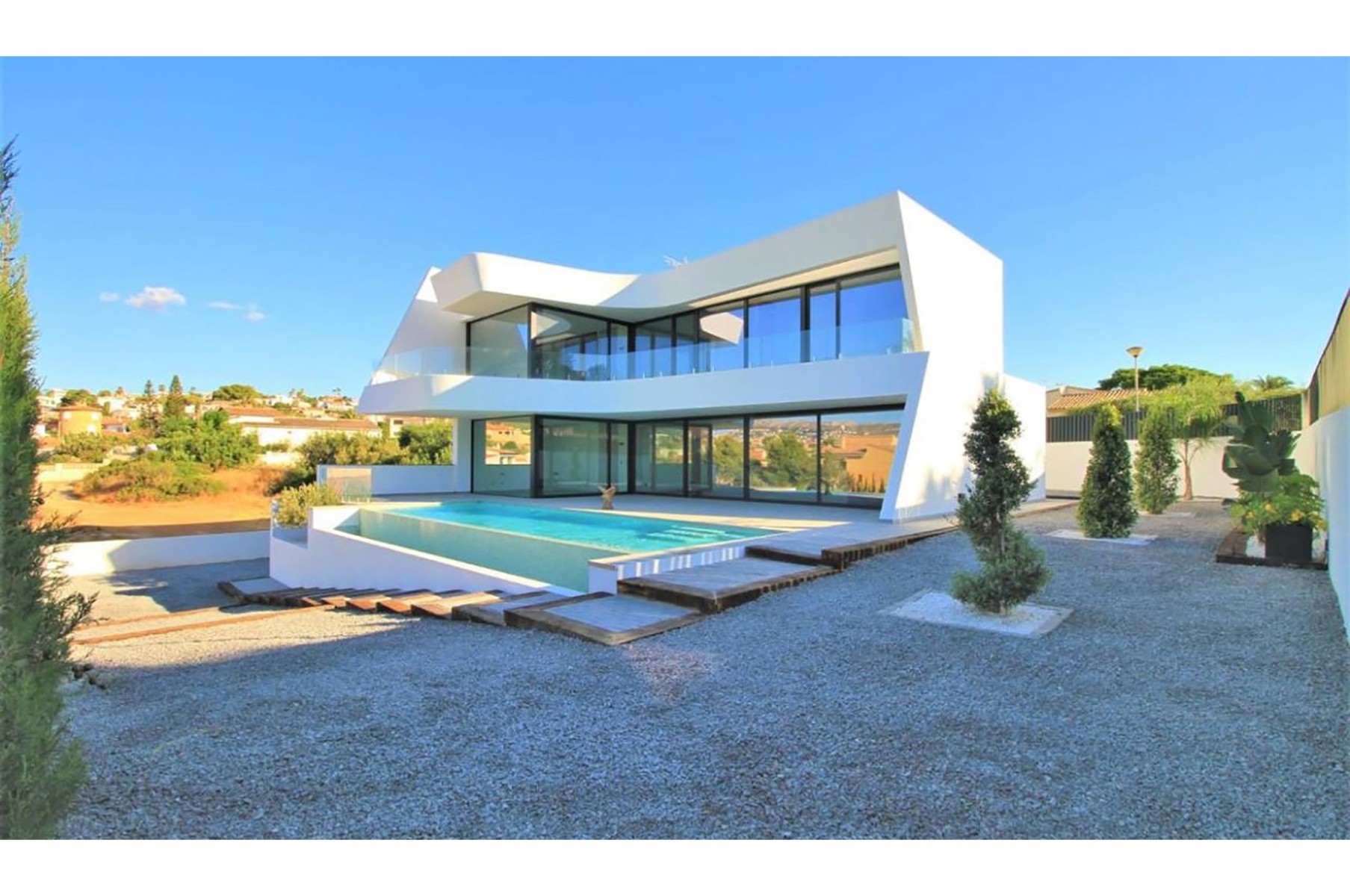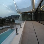 This villa is built on a plot of 922m2 in Calpe (Spain, Alicante) with a modern architectural style. The villa has different outdoor areas, large terraces, private infinity pool (10.5 x4 m2), and garden.