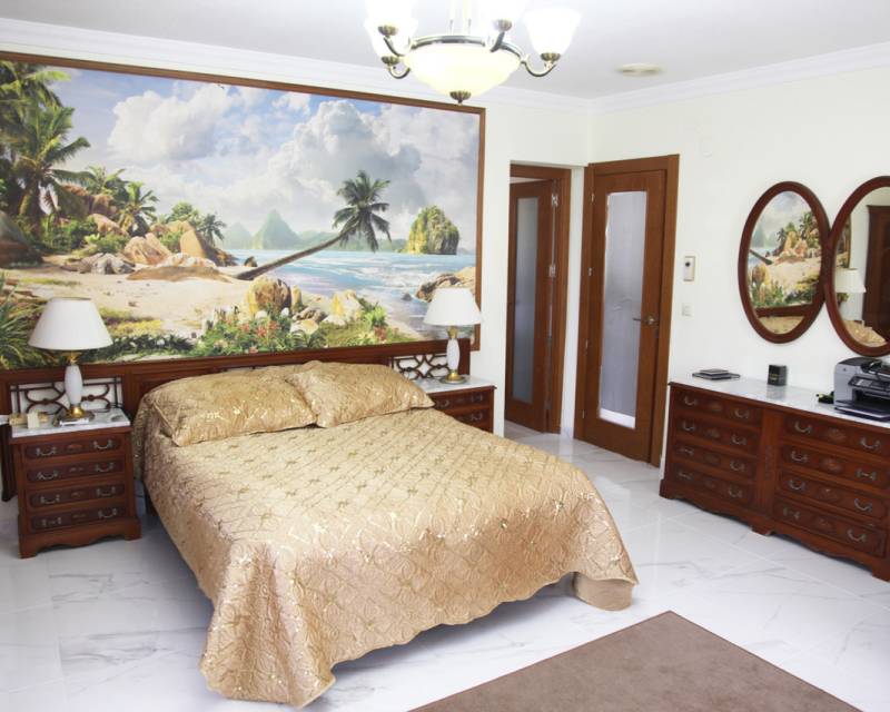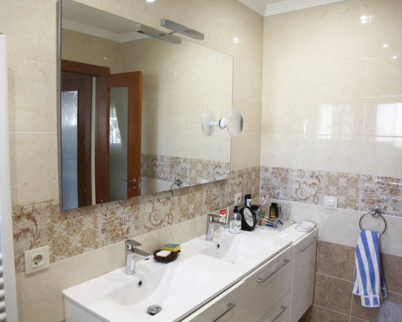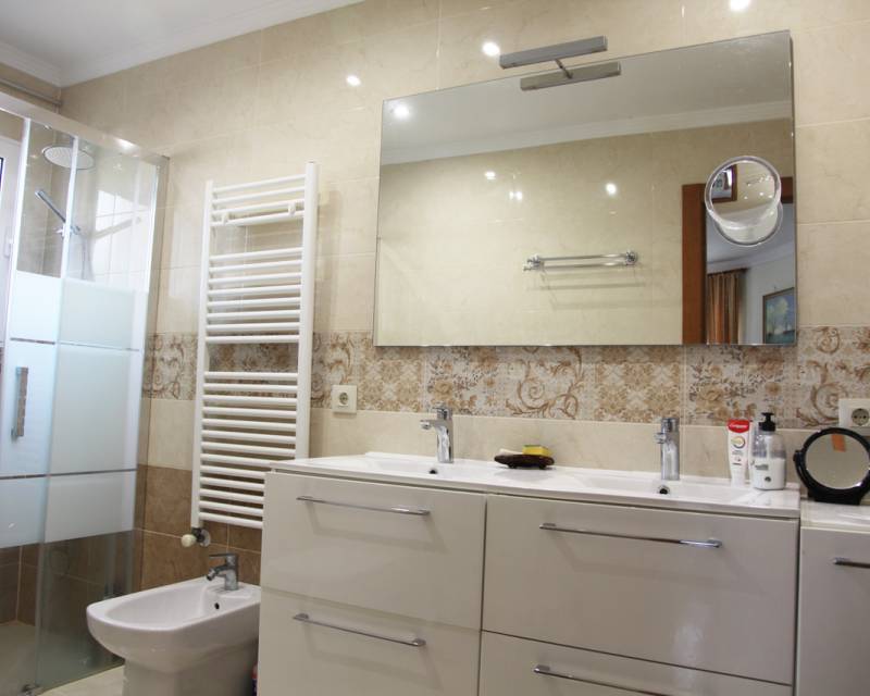 Mediterranean style villa in Calpe, located in a magnificent urbanization very close to all services and beach. The Chalet is divided into two independent houses, the ground part  is the apartment with 2 bedrooms and 2 bathrooms, separate kitchen, living room with access to the naya where you can play billiards or do some gymnastics. In the upper house it offers 3 double bedrooms, 2 bathrooms, completely renovated kitchen, spacious and bright living room with fireplace, you can also enjoy a large glazed and open terrace. It benefits from sauna, BBQ area, a large garden with fruit trees, ample space in the pool area, parking etc.