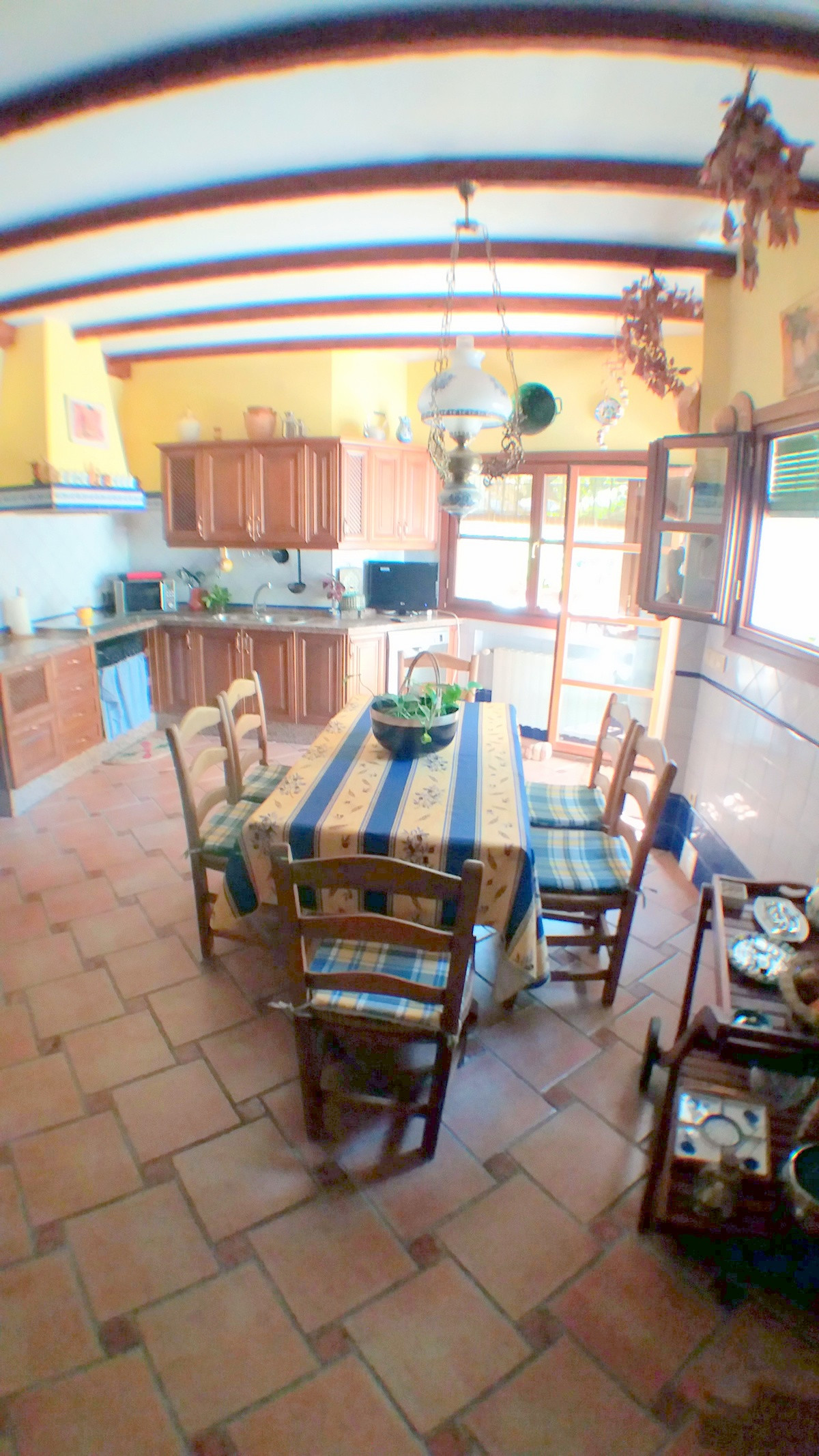 The lounge leads through to the rustic style andalucian kitchen this comes fully fitted.