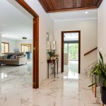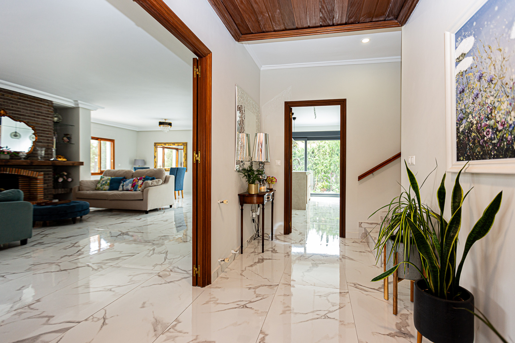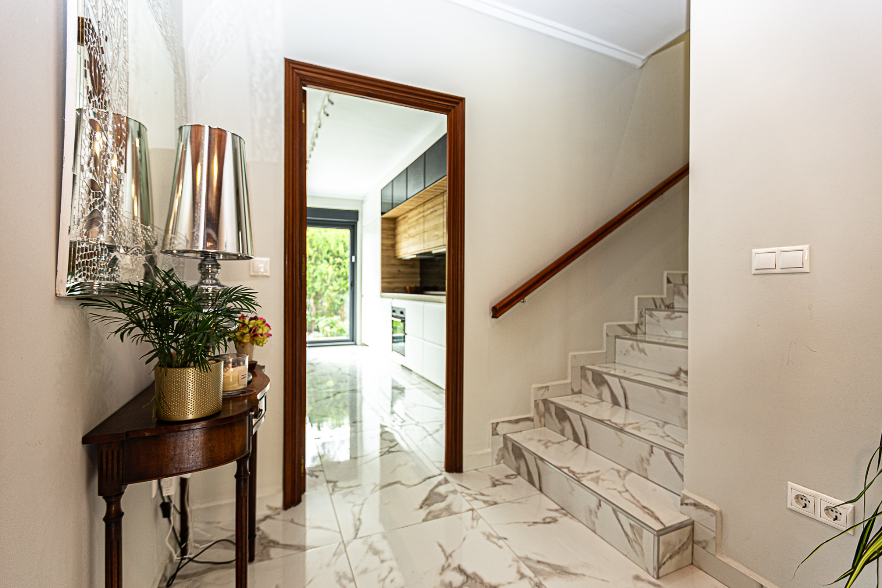 The upper floor of the house accommodates four bedrooms and two bathrooms, all renovated with quality finishes. Central air conditioning ensures an ideal temperature in all seasons. One of the bedrooms has access to a private terrace with partial sea views, creating a perfect space to relax.