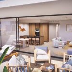 The apartments have a modern design, presenting an open plan living area, combining the kitchen, dining area and lounge, into a large space with access to the terrace.