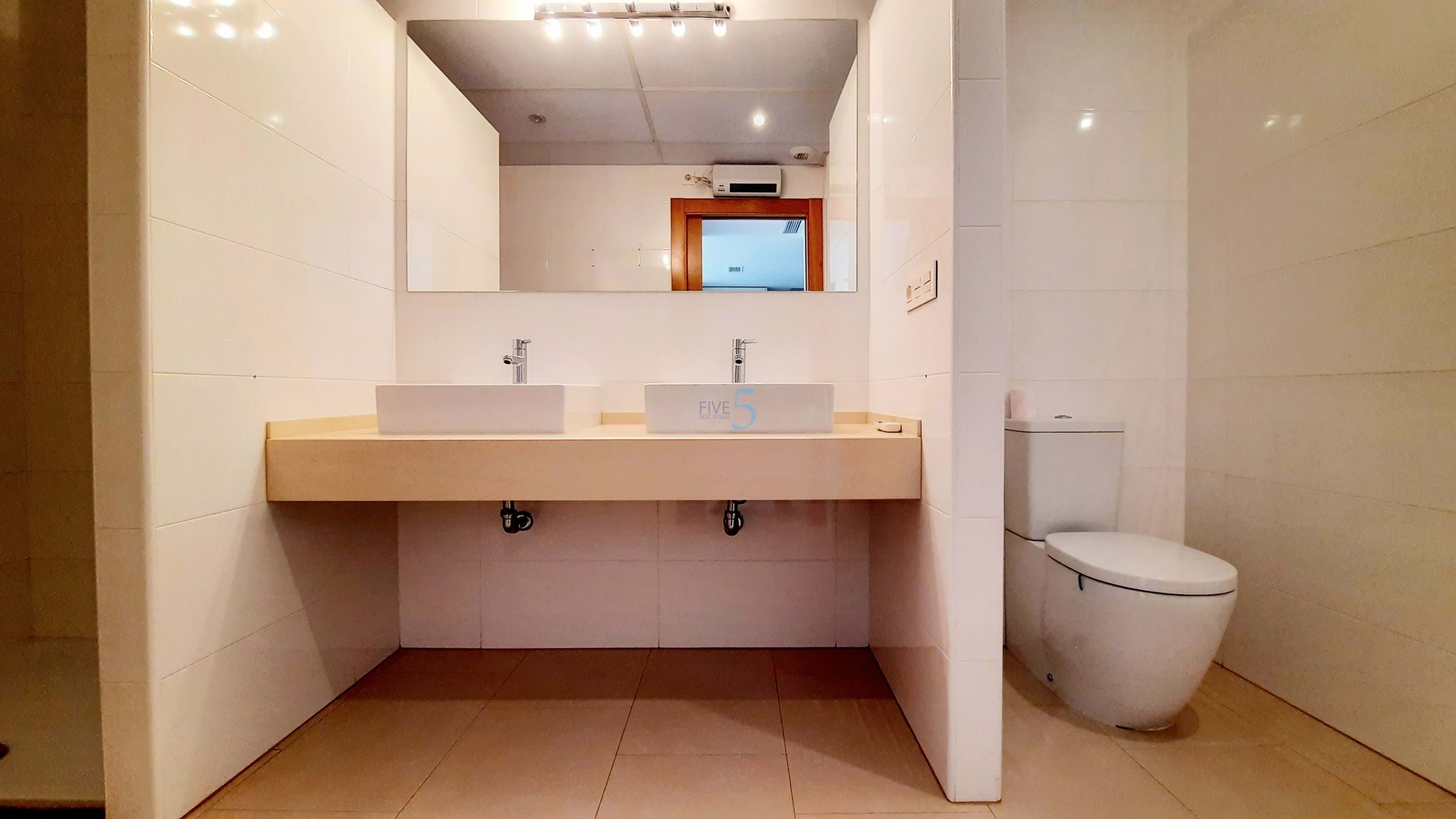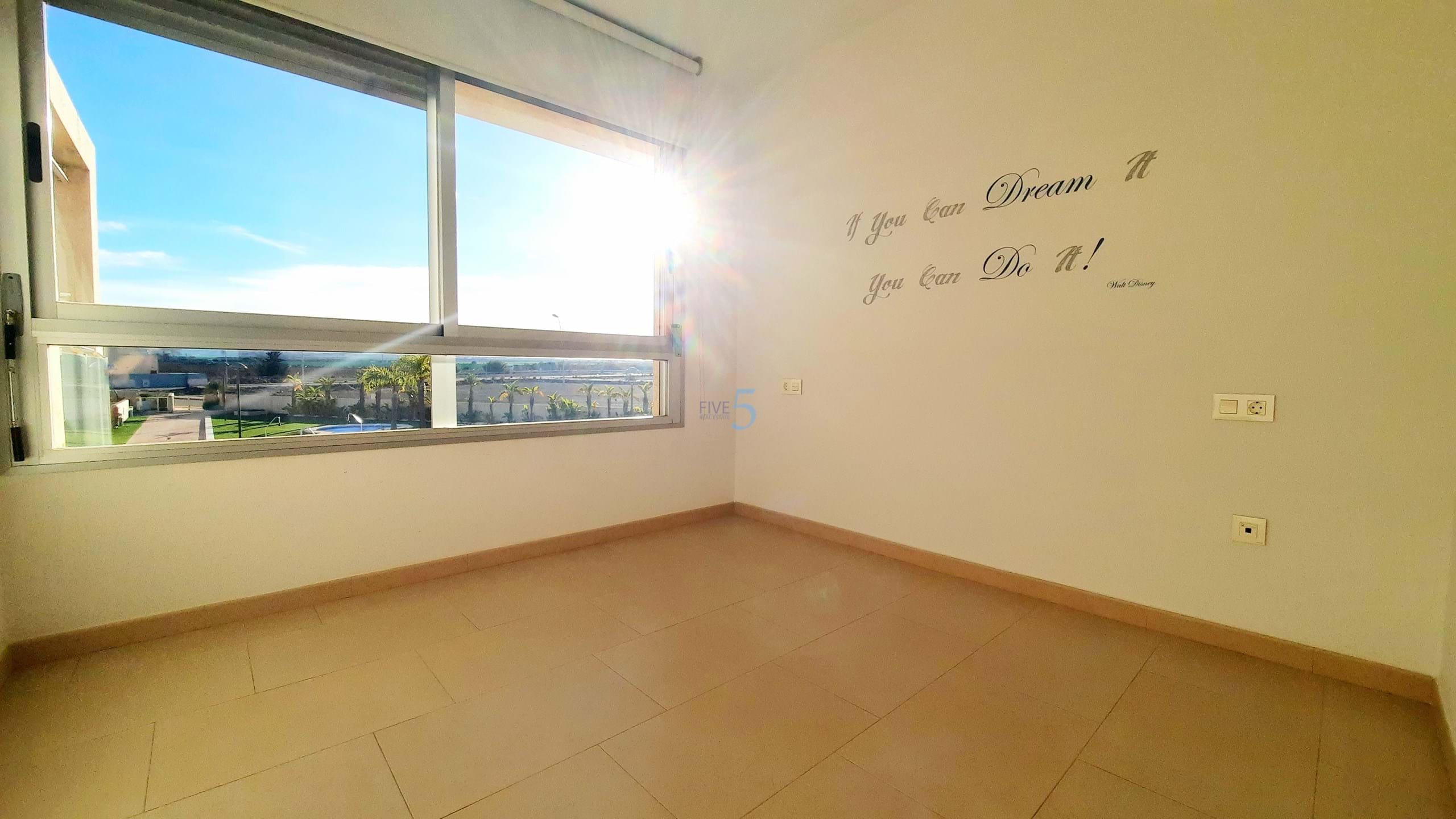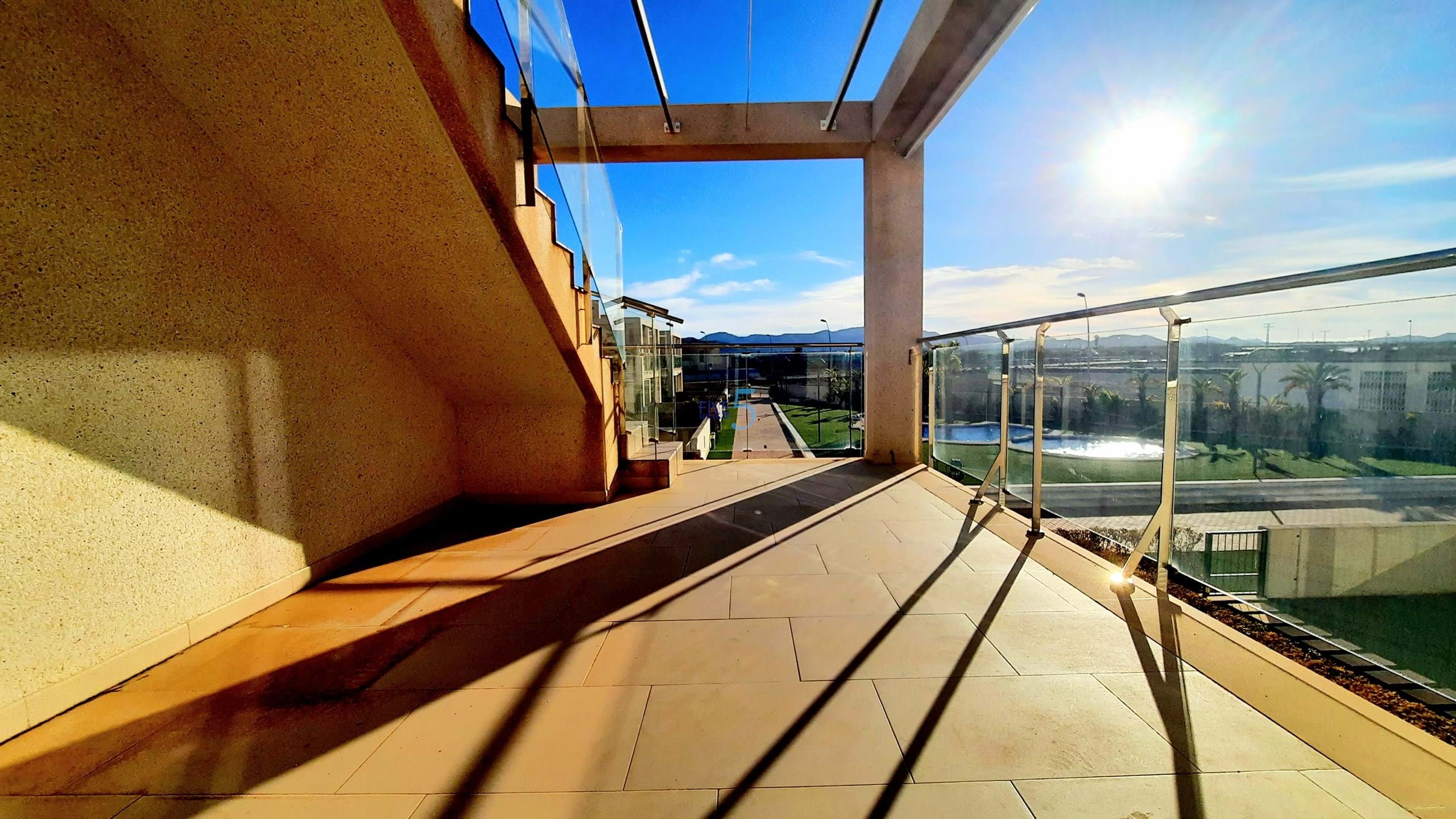 This upper apartment has an open-plan living room/modern fitted kitchen with large sliding doors onto a large terrace that looks over the pool area and countryside in the distance. Off the living room are two double bedrooms with fitted wardrobes and a very spacious family shower room. From the living room terrace, there are stairs to your 26.5 m2 private solarium. Again this space has open views of the pool and countryside.
