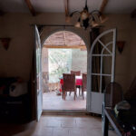 The fully fitted kitchen connects conveniently to the outdoor areas, which include terraces and a traditional patio that allow you to enjoy the surrounding countryside and the peaceful atmosphere of the property.