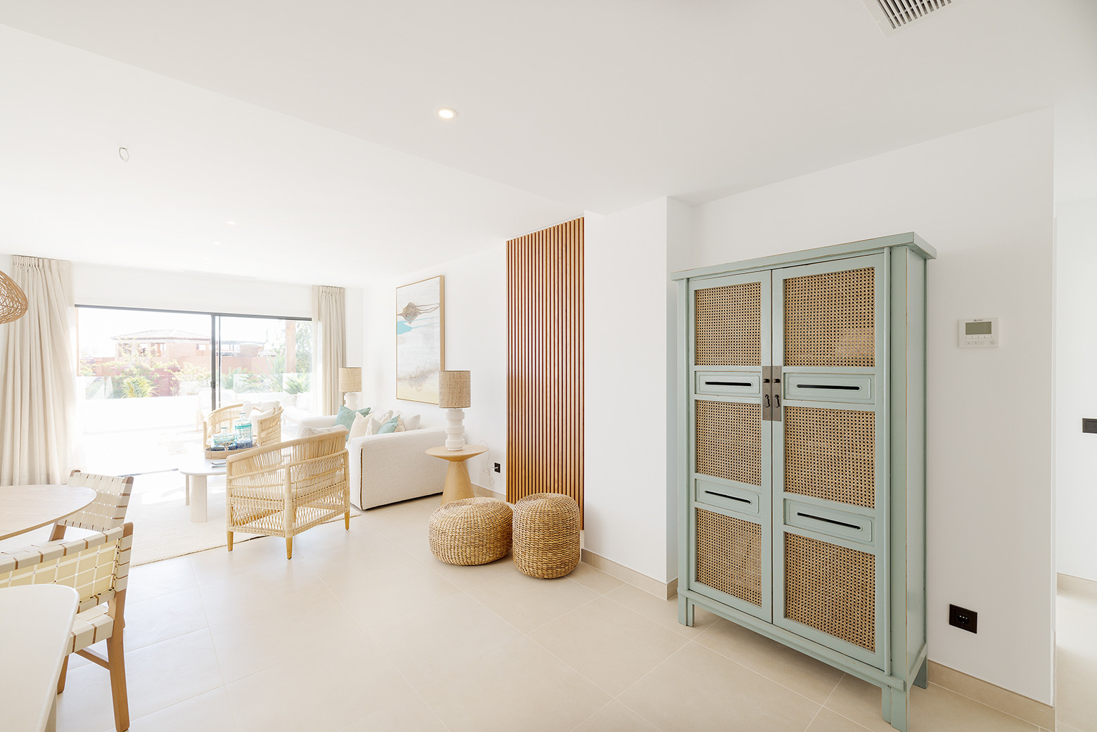 Recently released for sale, this luxury 2 bedroom garden apartment is situated just a 5-minute drive from the beach, within the Casares Costa Golf urbanization, neighbouring the renowned Finca Cortesin—one of southern Europe's premier residential communities and the distinguished winner of the title "Best Golf Resort in Europe." The apartment is finished to a high standard, and boasts a unique layout, spacious terrace a, dedicated garage space, and a separate storage room. The property offers a fitted kitchen and bathrooms, security shutters and fitted wardrobes in the bedrooms. This urban enclave seamlessly marries the tranquillity of nature with the convenience of essential services, the allure of the sea, and an array of recreational activities spanning from golf to hiking and hot springs. The fusion of modern style with meticulous attention to detail and high-quality finishes defines the aesthetic of these residences. This is an ideal haven for those seeking an active and rejuvenating lifestyle in a picturesque locale on the Costa del Sol. Contact us now to book a viewing,