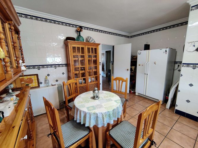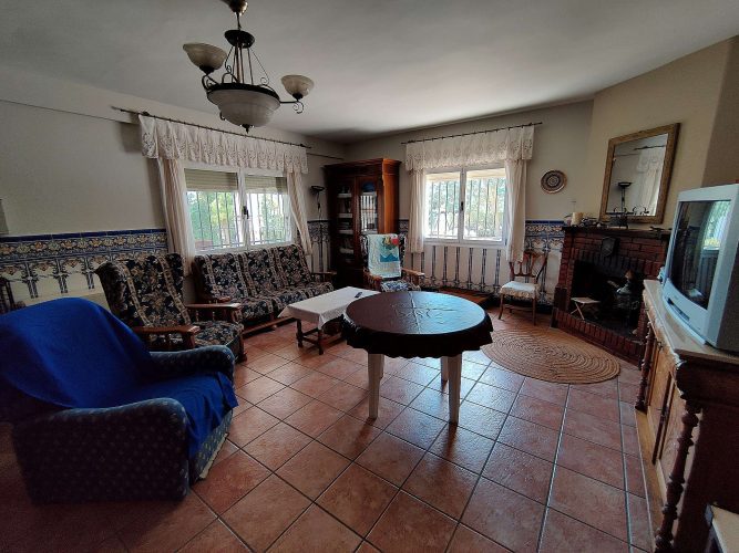 Detached Country House in Caudete. Detached country house in Caudete, with a total size of around 200m2 and a plot size of 3300m2. The house has 3 double bedrooms, 1 bathroom, a lounge-dining room with a fireplace and a log burner, large kitchen with a dining table, and a large garage/workshop connected to the kitchen.