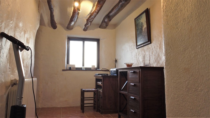 Fully renovated single story lovely traditional Spanish farmhouse for sale with 3 bedrooms, 2 bathrooms and a washroom. Rustic style finish with original wood-beamed vaulted ceilings. Sold fully furnished ready to move into. Plot size of 1250m2 (0.3 acres) with large terrace sitting area, garden and workshop/garage measuring 6.5m x 6m. Located on the edge of a quiet rural community near Venta Quemada, Granada. 15 min. from Chirivel, Almeria. Great views across the countryside. Private entrance with easy access. Mains services connected, double-glazing throughout and central heating from a wood burner, A/C unit in master bedroom. -------------------- Option to purchase with neighbouring fully renovated cortijo with second home for renovation. See our Rusticom ref. V2571. -------------------------------- Full video tour available. -------------------------------- The property is accessed via a level track to the home that enters the property. There is a large garage with wood storeroom next to it. At the front of the house is a lovely, sunny sitting area with views across the countryside. ----------------------------------- Entering the house is a covered porch area into the living room and dining room with a large wood burner that also serves as the central heating boiler. Next to the living room is a door to the kitchen and there is a washroom off the kitchen. -------------------------- Back through the dining room is an office area, hall to the master bedroom with a skylight and an ensuite bathroom with bath and a shower stall. ------------------------------------ At end of the house are 2 more double bedrooms and a large wet-room. -------------------------------- Bars/restaurants and all amenities available just a short drive away in either Chirivel, Almeria or Cullar, Granada.