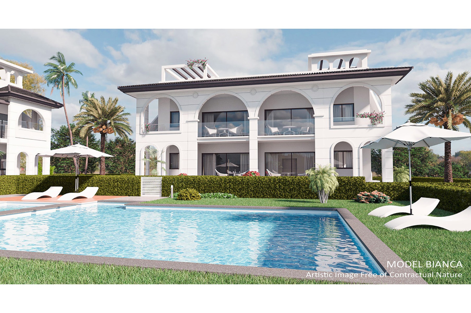 The residential offers apartments with 2 bedrooms and 2 bathrooms, distributed in small blocks of two heights and only 4 houses, with large private gardens. The apartments feature a spacious open plan lounge, dining room and kitchen, opening onto a terrace. The houses include pre-installation of A/C through ducts, a storage room and parking space.