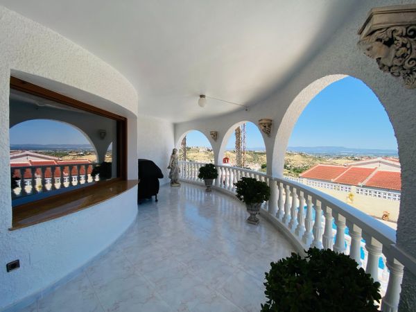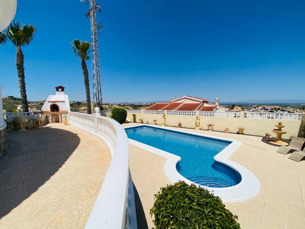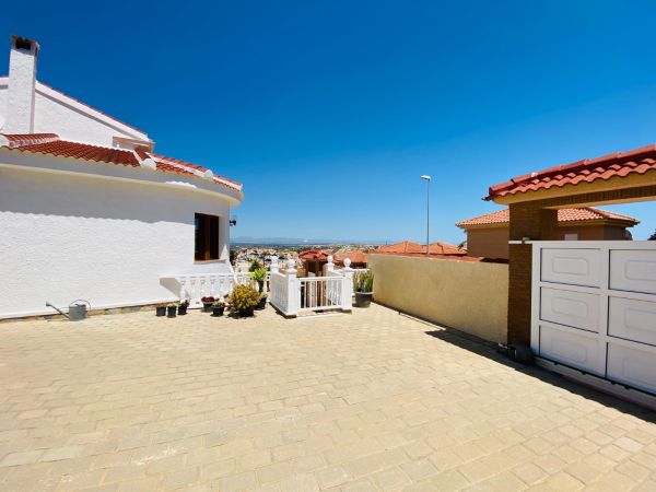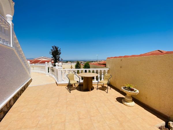 Welcome to this beautiful villa in Ciudad Quesada.The house is located on a hill and therefore has wonderful views from all terraces. From here you have a fantastic sea view. The home has a large plot and several nice patios / dining areas. It has a private pool of 5x10 meters which was renovated with a new pump and new filter in 2021.When you enter the plot, you are greeted by a large parking space with electric gate, as well as a spacious garage.At the entrance you have a beautiful terrace with fantastic views.On the ground floor you will find a spacious living room, kitchen with separate pantry, a spacious dining room, 3 bedrooms and 2 bathrooms. From the kitchen you have access to a terrace with beautiful views of the surrounding area with beautiful mountains and the sea. On the second floor you will find a large bedroom with attached bathroom. From the bedroom you have access to a large terrace with very good sun conditions and sea views.The property is sold furnished. All windows are changed into 3 layered safety glass. The doors have been changed as well into security doors. AC in all the bedrooms. Contact us for more information or to arrange a viewing!