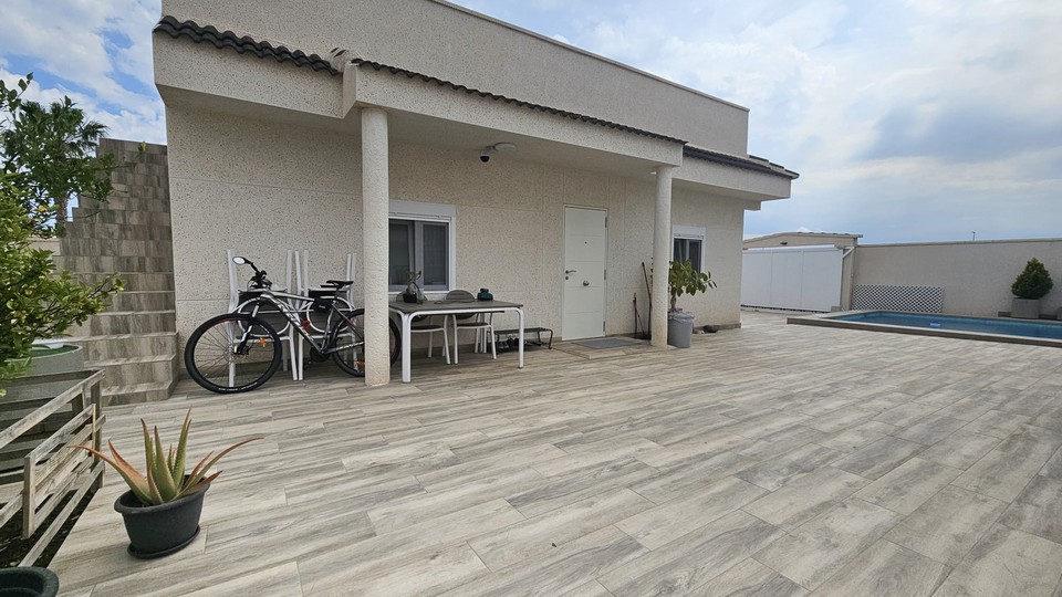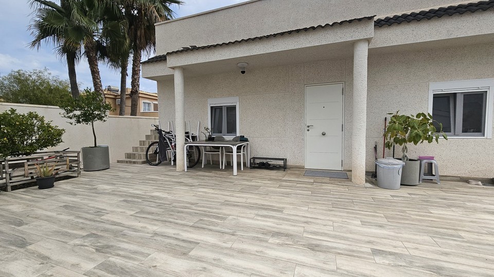 This beautifully reformed detached villa with separate guest annex in Lo Pepin, Ciudad Quesada, offers something truly special. Set on a generous 500m² corner plot, this is a rare offering.The main villa features 2 double bedrooms and 2 modern bathrooms. There’s a large, open-plan kitchen, lounge and dining area – bright, airy and ideal for everyday living. Everything has been tastefully updated.Across the tiled garden is a separate annex. Here you’ll find another 2 bedrooms and a family bathroom. Perfect for guests or extended family.Both properties have been fully rewired and replumbed. Air conditioning is new throughout. The standout feature is the stunning 10m x 5m swimming pool – perfect for cooling off on summer days.There’s off-road parking for up to 3 cars. Low-maintenance tiled areas mean more time relaxing and less time working. The annex also boasts a spacious roof terrace with panoramic views to the lakes and out to the sea.A powerful 11kW solar system keeps energy costs to virtually zero. And with no community fees, running costs are incredibly low.This properties come fully furnished, so you can move straight in. It’s just a few minutes from the bars, restaurants and supermarket in nearby Pueblo Bravo. La Marquesa Golf and the stunning Recorral Park are close by, as are the golden beaches of Guardamar. Alicante airport is only 35 minutes away.Whether you’re looking for a permanent home, a holiday retreat or a rental opportunity, this unique option ticks every box. Viewing is highly recommended – you won’t find many like this.