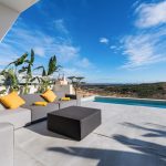 In a fantastic location close to the golf course of La Marquesa at Rojales and with amazing views across to the coastline at Guardamar del Segura is this luxury development with modern design villas that blend into the hillside. Recently released is this 2 level amazing 3 bedroom villa which comes with a large 110m2 basement with a sunken garden that can be designed for your needs and can incorporate extra bedrooms, a games room, bodega, garage for 2 or more cars etc. The finish of these villas are exceptional and come with a 9 x 2.75 infinity swimming pool, electric appliances in a designer kitchen, hot and cold AC units, underfloor heating in the bathrooms, electric shutters, a landscaped garden and many other features that need to be seen to appreciate. There is a show house available for viewings.