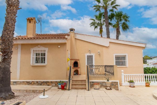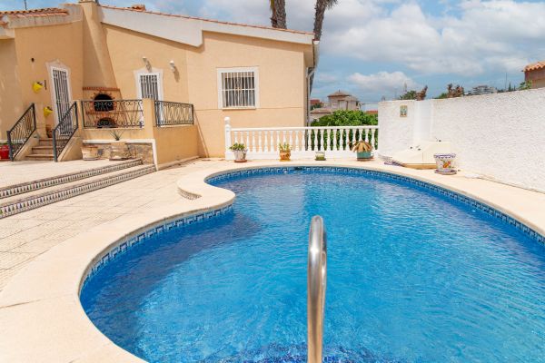 Opportunity to purchase this 2 bedroom 2 bathroom detached villa located only 500m from the town centre.This villa has accomodation all on one level, stairs lead you to covered terrace . You enter the property to an open plan to the kitchen dining area, a spacious lounge, which leads out to the outside BBQ area looking out to the private pool.There is a master bedroom with en suite bathroom and fitted wardrobes, double bedroom and bathroom.On the outside you have a garden with barbecue area and private pool. A utility/laundry room with plenty of storage and also an extra storage room. Covered car port for two vehicles.The property is walking distance to the Town Center, close to amenities.Do not hesitate to contact us to arrange viewing