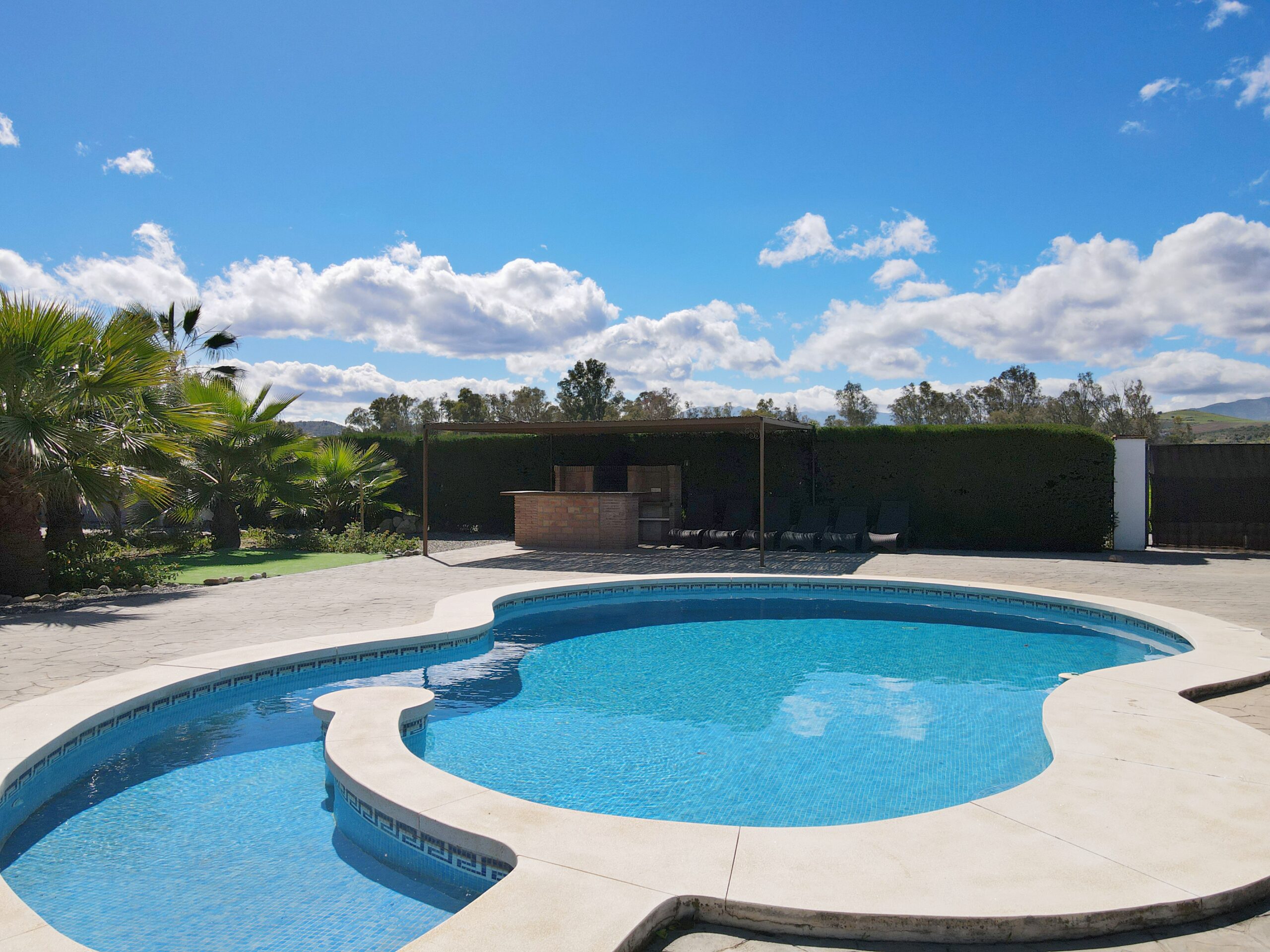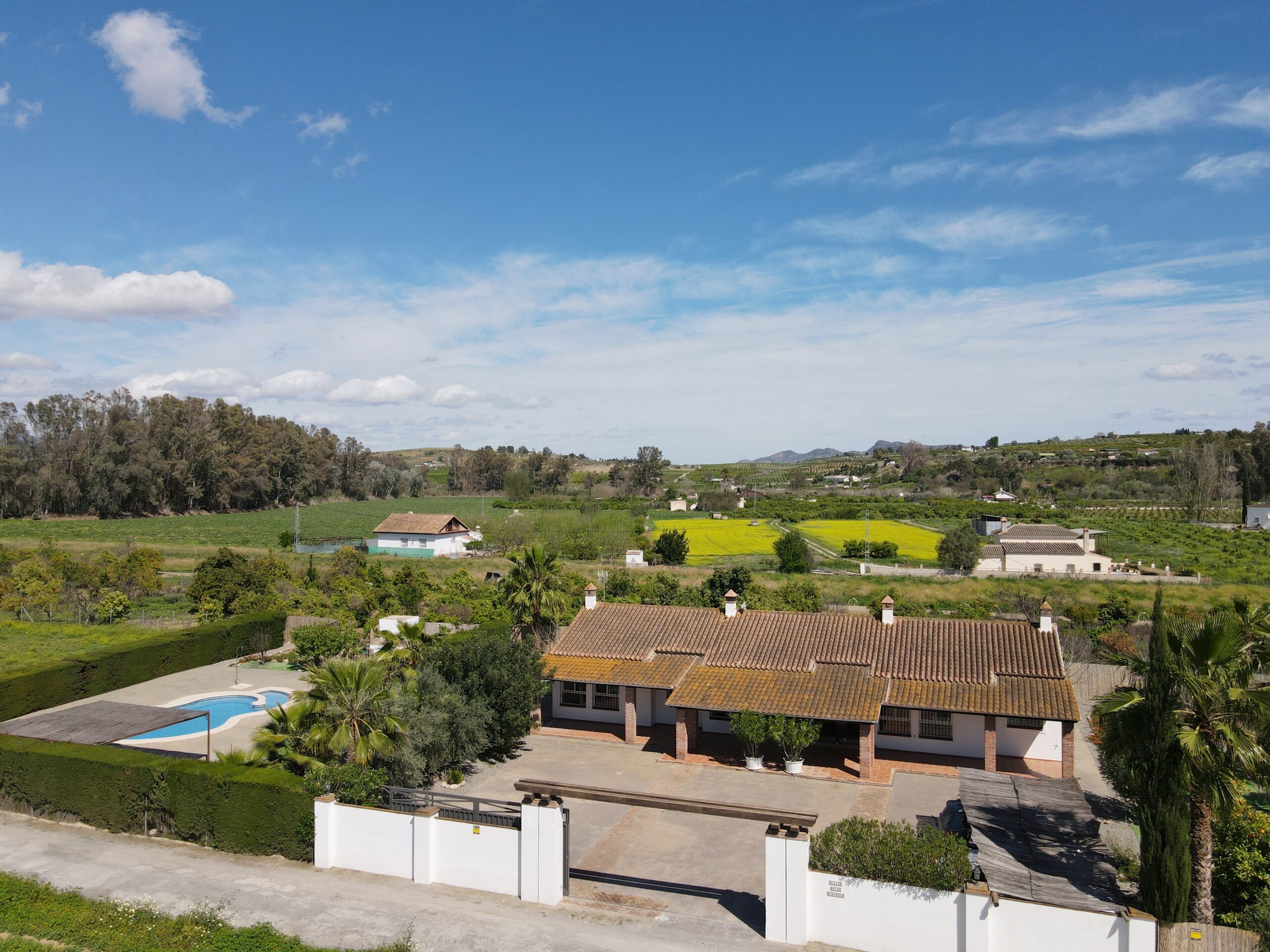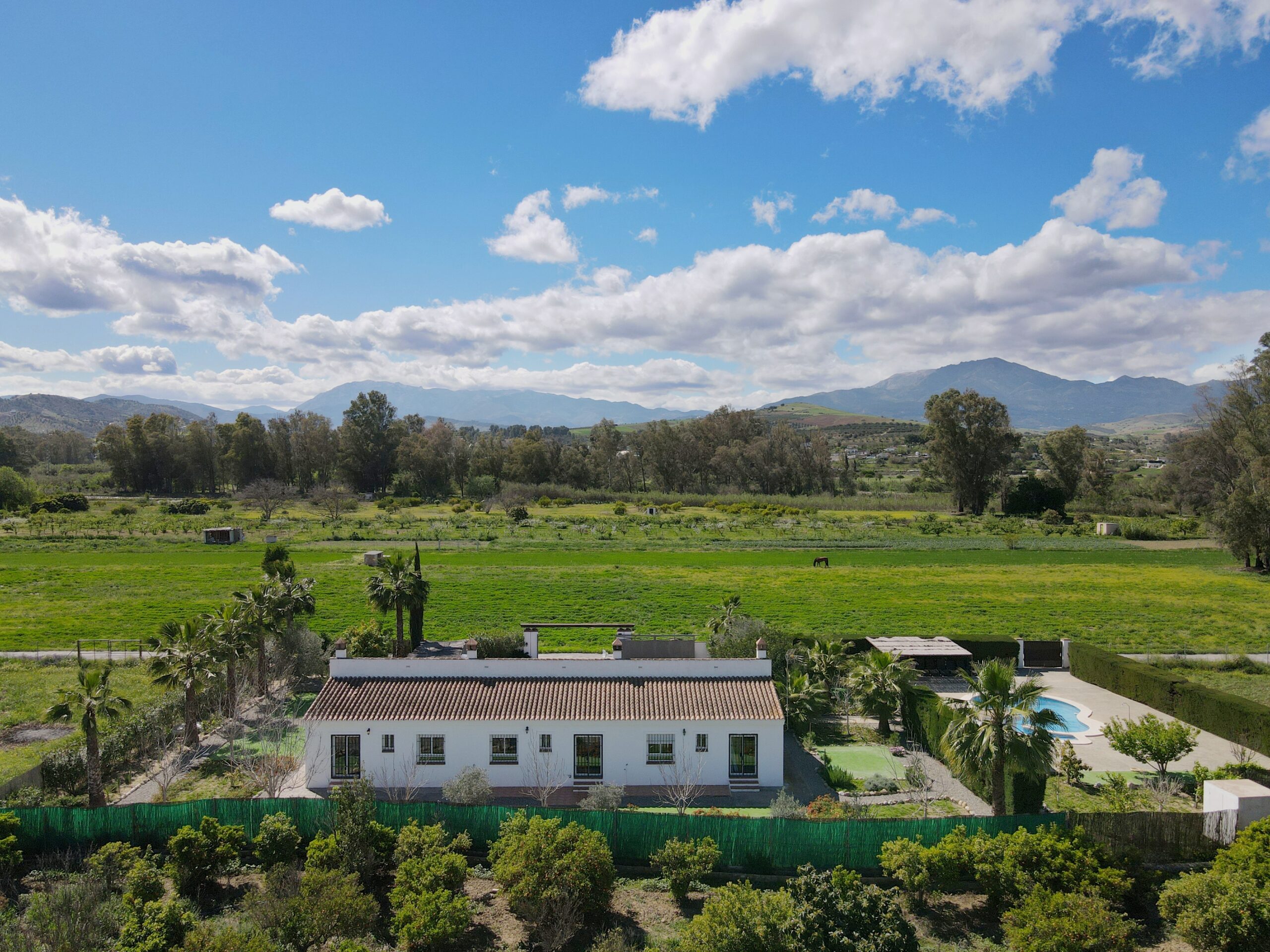 On 16,000m2 of completely flat, fenced land is this very beautiful single-story 6 bedroom finca, which is located directly in a very idyllic area on the river called Rio Grande and has an AFO and a tourist license that can be reactivated.