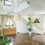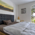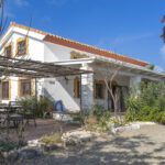 The grounds feature a mature garden with established olive trees, as well as a dedicated hot yoga and meditation dome, creating a peaceful and private outdoor environment.