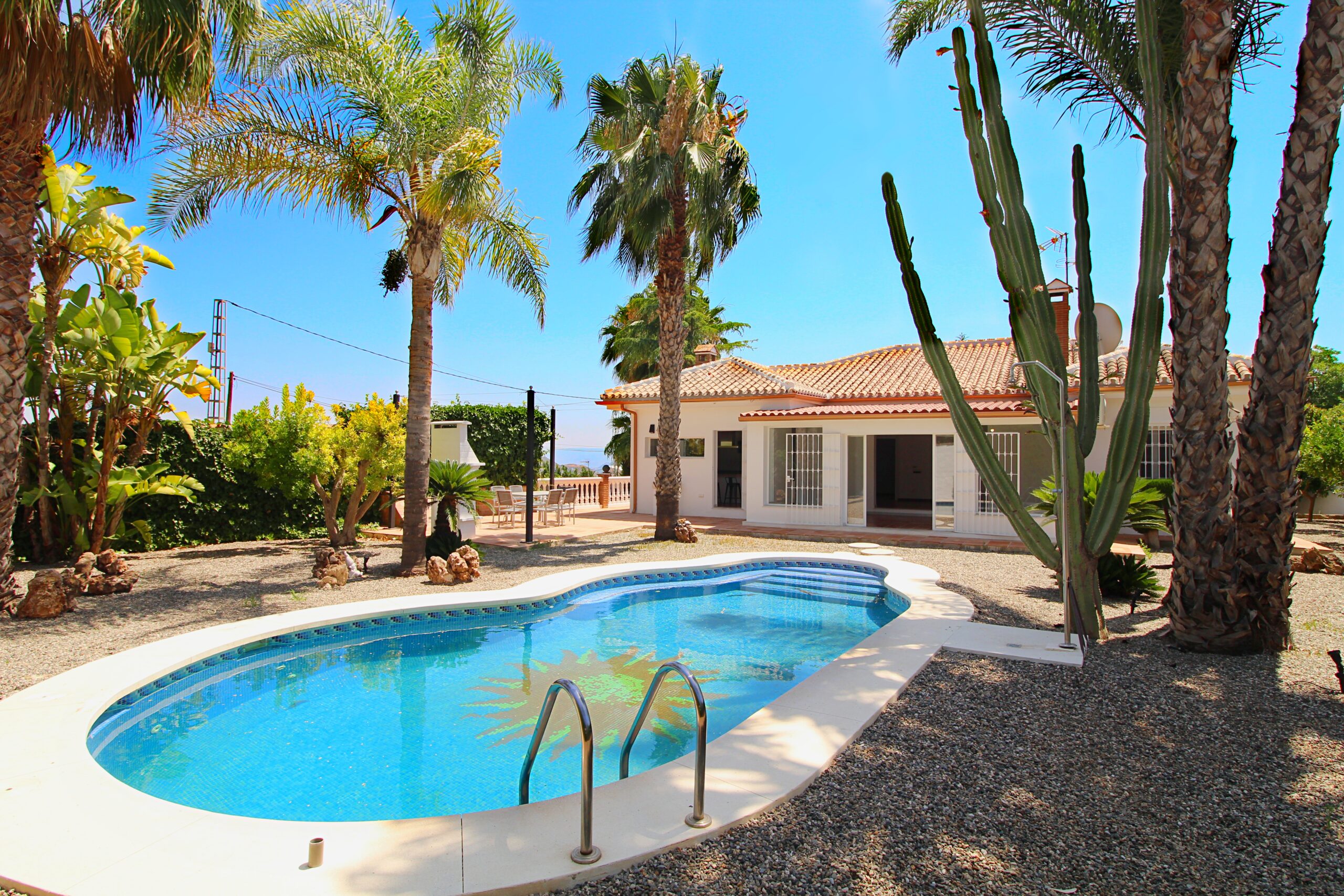 The recently refurbished villa contemporary style on a double plot 2200m2 and a large Garage / Workshop that could be converted into further accommodation.