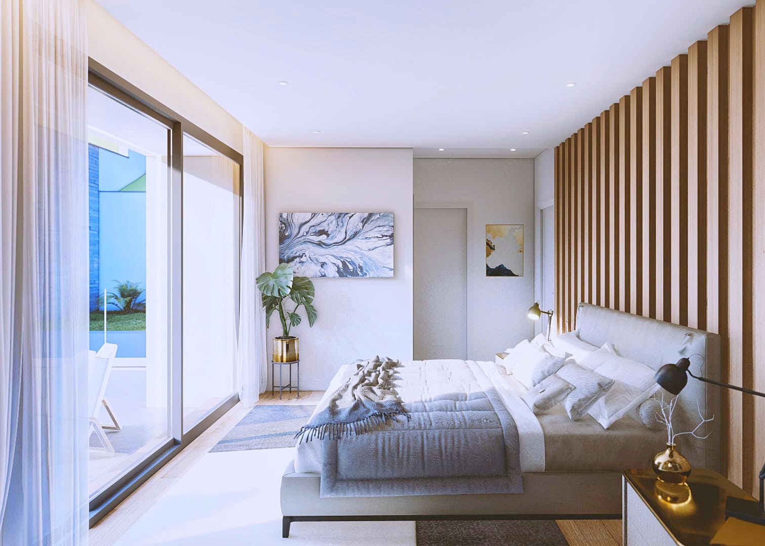 Built to a high standard with the latest qualities, the new owner has the option of choosing joinery for interior doors and cabinets. The open-plan living room-kitchen opens onto the terrace with a 15m2 pool. The kitchen is delivered furnished but without appliances and the owner has the possibility to choose the kitchen furniture and countertops.