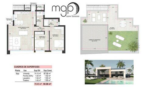 MGP New Homes are delighted to offer for sale these brand new villas being built on Condado de Alhama Golf Resort. Ready for occupation towards the end of 2024, the villas are located close to the resort centre and restaurants. Ideal as permanent or holiday homes, these two bedroom, two bathroom villas have spacious open-plan living rooms, gardens with space for swimming pool and large solarium terraces. Features include a water softener, LED lighting in the kitchen and bathrooms, pre-installation for A/C, charging point for electric vehicle and electric blinds. There is an option to add a pool for an extra charge. We also have three bedroom villas here with swimming pools included in the price. Contact MGP to arrange a tour of the resort.
