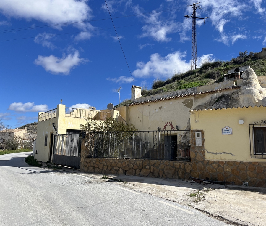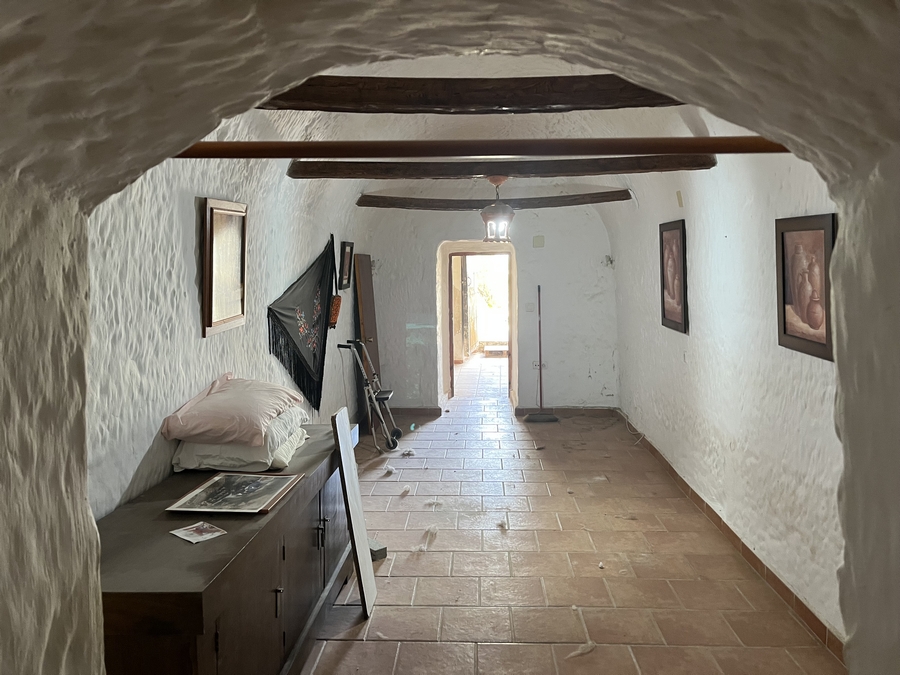 The cave is in need of some TLC and some refrigeration but is in good condition. There are 3 bedrooms, kitchen, 2 living rooms one with fire place, bathroom, a very large cave room to reform, garage and a large outside patio with a roof terrace that has the most amazing views.