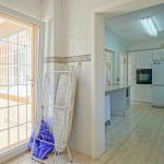 We go up the stairs to the first floor, where we find a living-dining room with fireplace, a semi-open kitchen and a laundry room. On the other side we find 2 double bedrooms and a full bathroom.