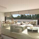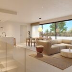 Inside, the villas offer a bright and elegant open plan living and dining area with a modern integrated kitchen and peninsula. Large sliding doors with recessed rails create a seamless transition between indoor and outdoor spaces, providing direct access to the garden, pool and parking area. This thoughtful layout enhances natural light and creates a welcoming atmosphere for everyday living and entertaining.