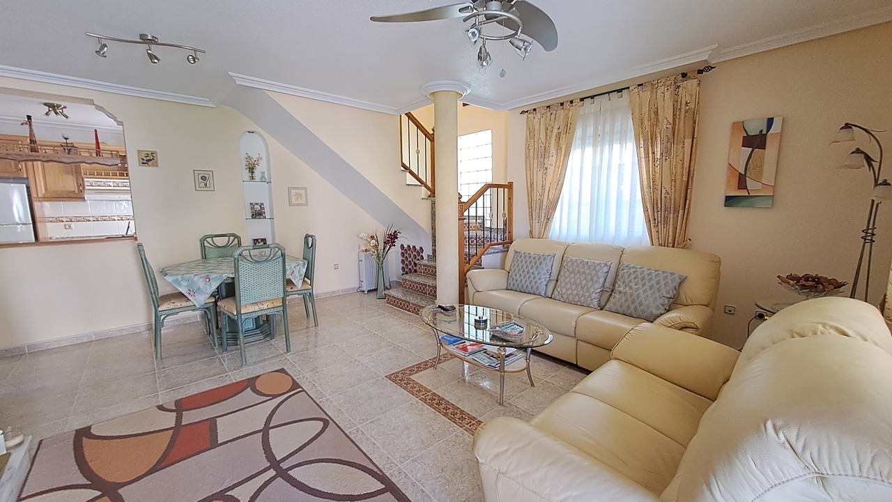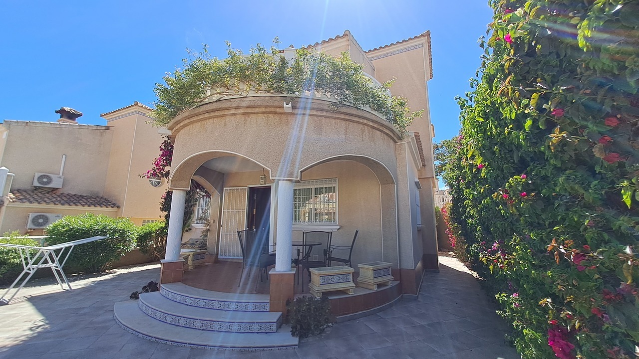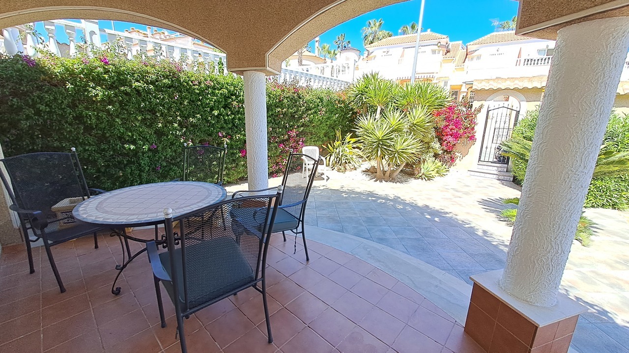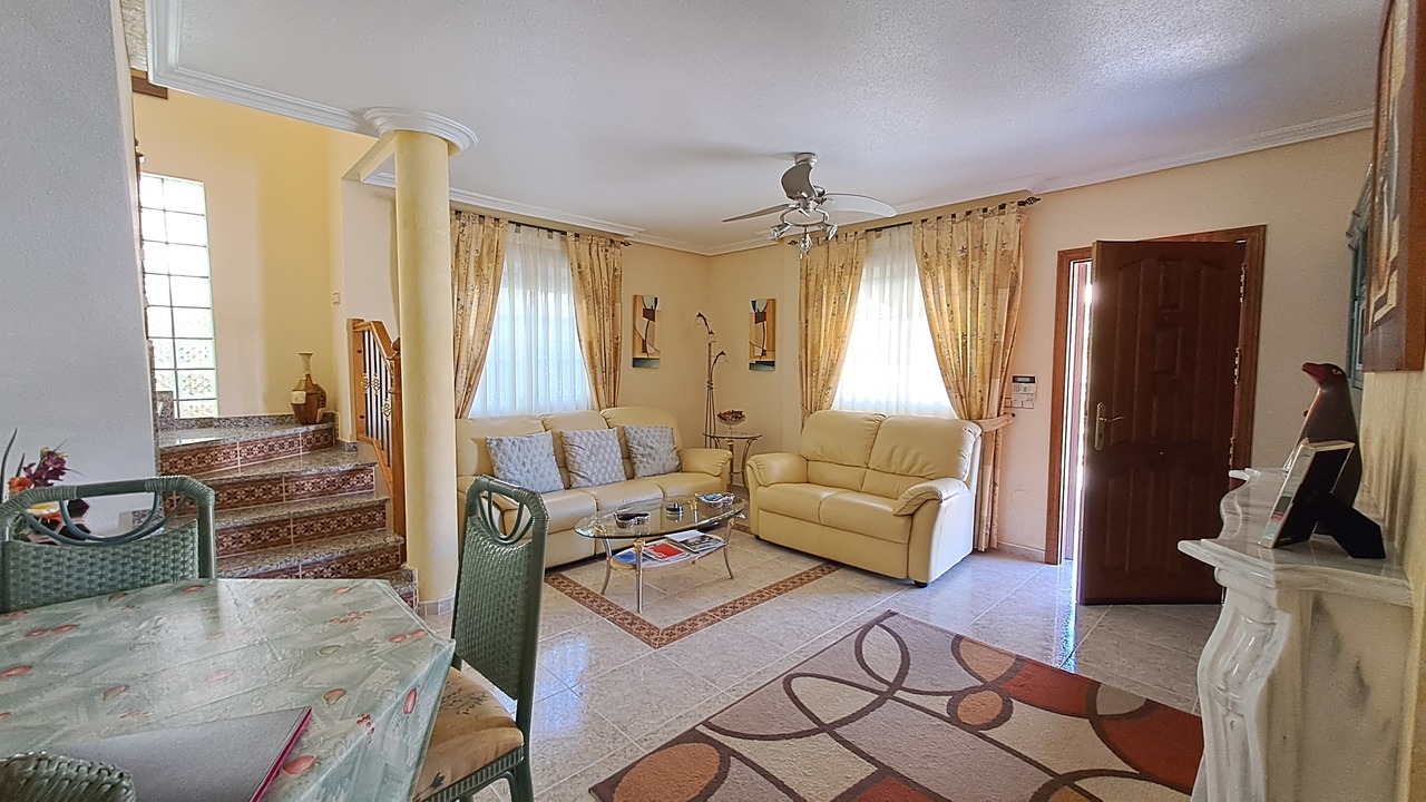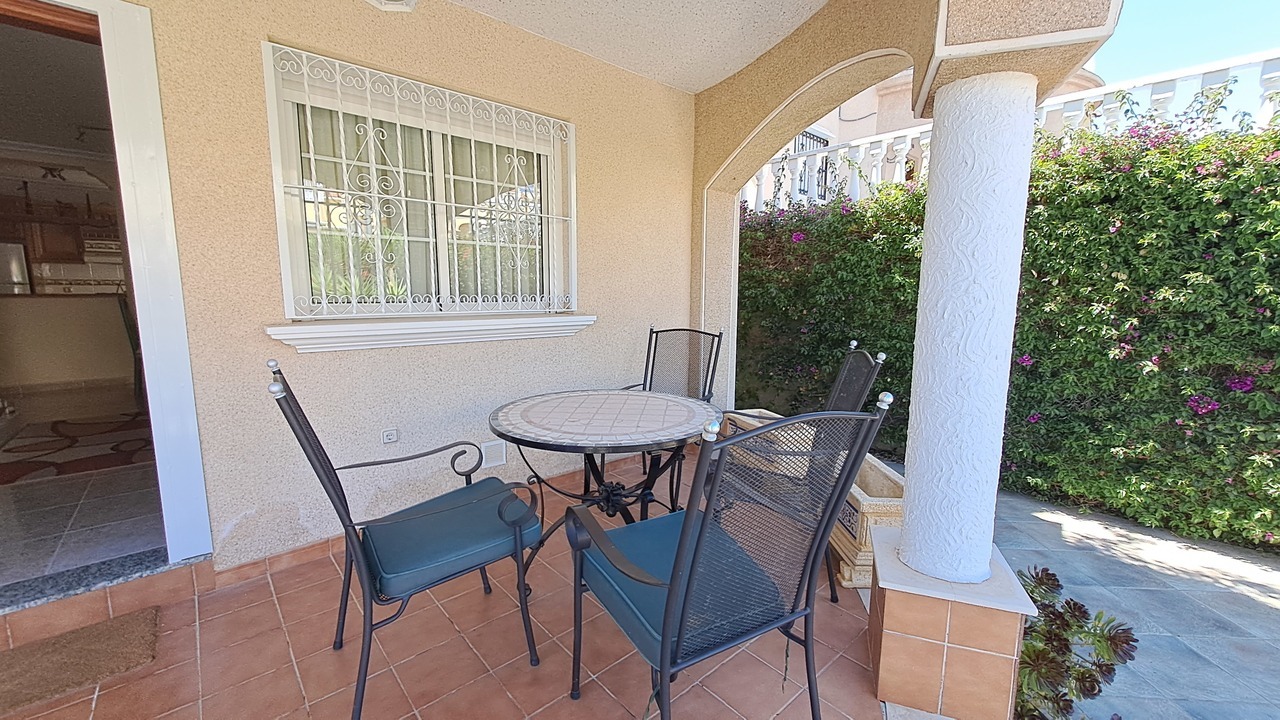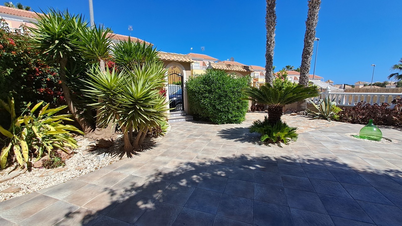 We are pleased to present to you this beautiful villa located in El Galan. In this property we can find a good size garden with palm trees, a storage room in the back side and plenty of outdoor areas.