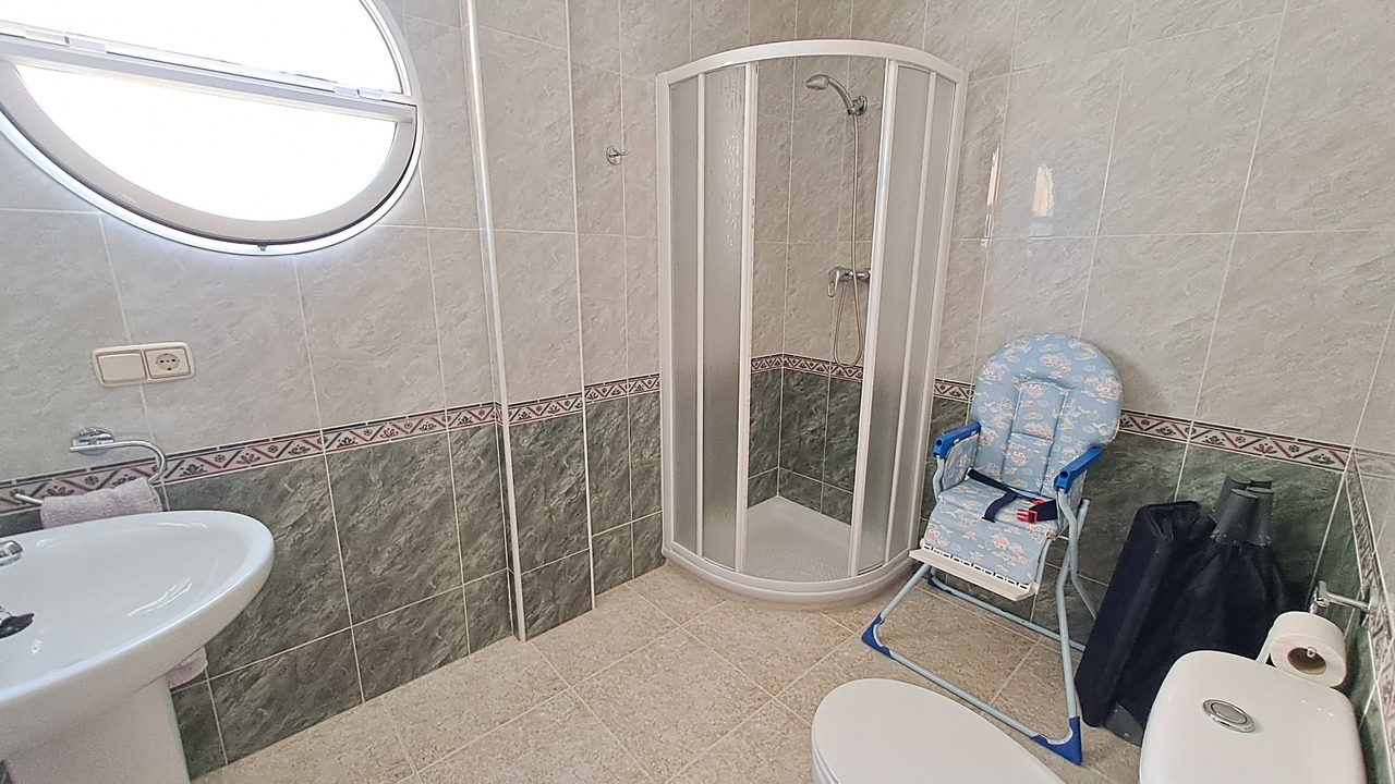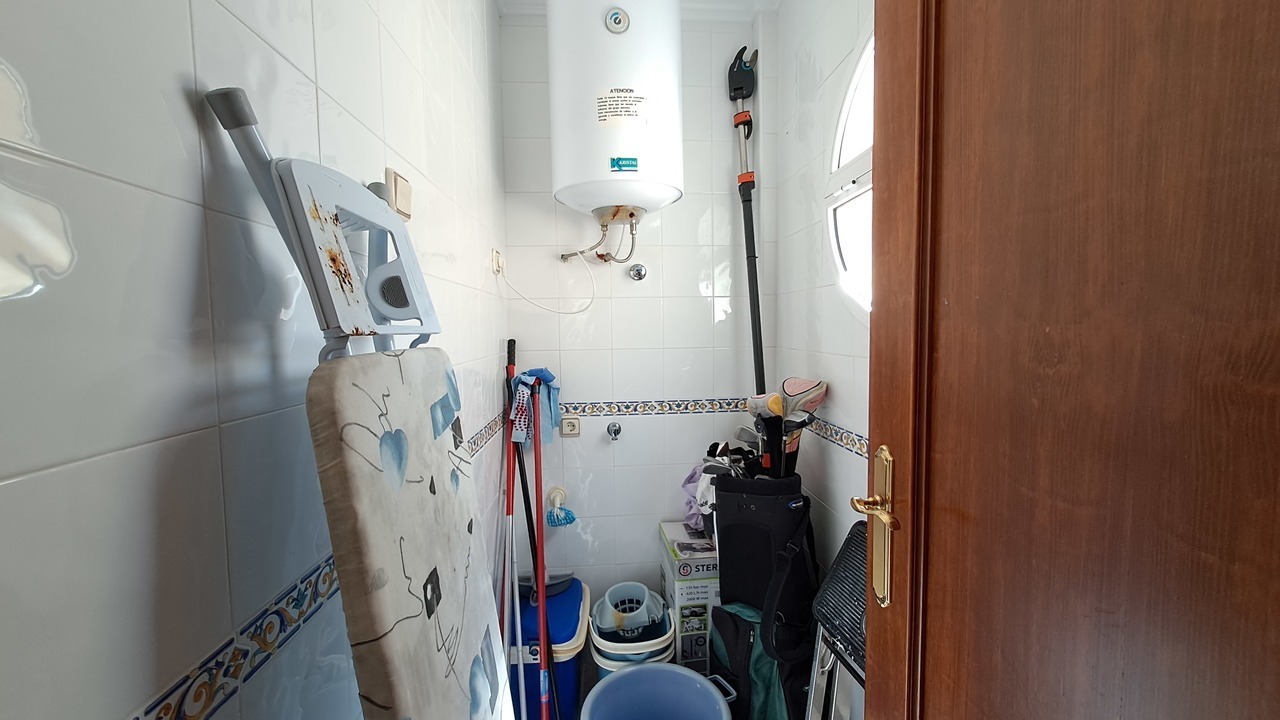 In the first floor of this detached villa, we can find a big front terrace in the entrance. Inside there is a big living room area, the kitchen with utility room, one bathroom with shower and one bedroom with built in wardrobes.