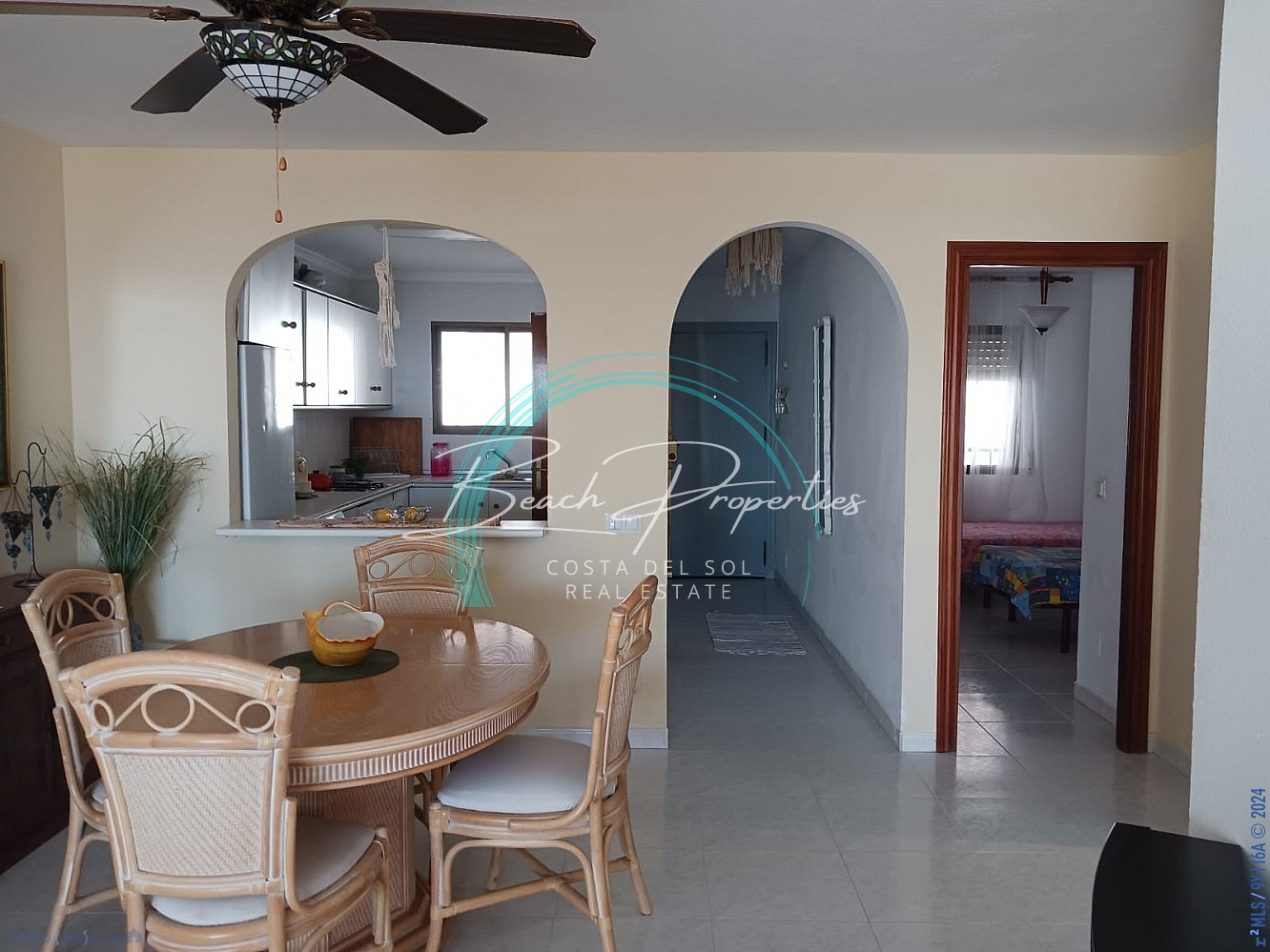 BEAUTIFUL apartment located on Morche Beach with south orientation and frontal views of the sea, has a communal pool, and a few meters from the sea. It consists of 106 m.2 built and has bedrooms with fitted wardrobes, a bathroom, separate kitchen, large living room, very spacious and bright with access to a 15 m2 terrace with front sea view