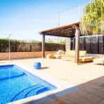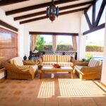 The villa features high ceilings with exposed wooden beams, creating a warm and striking atmosphere that reflects a truly traditional Spanish style. The interior layout is spacious and well balanced, offering a large fully equipped kitchen with an adjoining laundry room, ideal for comfortable everyday living.