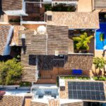 The exterior is landscaped with mature plants and impressive palm trees, enhancing the Mediterranean feel of the property. The villa includes a private garage, as well as a covered pergola at the front of the house, offering shaded parking for an additional vehicle.