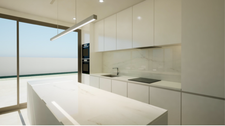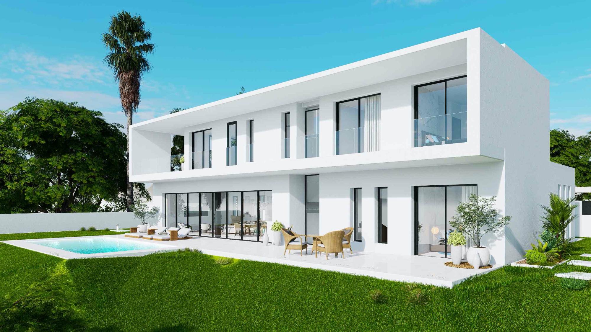 KITCHEN FURNITURE KITCHENS Straight front or independent island kitchen furniture made with furniture constructed from premium quality panels with a similar or lacquered finish. Options according to m2Casas Select. Worktop, sinusoidal and composite finishes, with designer taps. DEVICES Siemens or similar appliances, including induction hob, extractor hood, electric oven, fridge-freezer combination, built-in dishwasher, washing machine and microwave. LANDSCAPED SPACES OUTDOOR SPACES Landscaped areas with exclusive landscape design. Plants, trees, irrigation, etc. depending on the project. Access and parking area designed by architect m2Casas with concrete stones of different sizes and colors depending on the project. Private 4 x 8 m swimming pool and surrounding terrace with porcelain tiles. Options according to m2Casas Select.