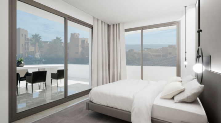 EXTERIOR CARPENTRY Exterior aluminum with thermal break, with sliding doors combined according to the project with double glazing and interior chamber. GLASS RAILS Glass rails by vertical tubular profile or mailbox system, depending on construction requirements. INTERIOR CARPENTRY ACCESS DOOR The access door to the house is armored with a security lock. SLIDING DOORS Practical or sliding doors, smooth and lacquered. LACQUERED CABINETS 1.5m lacquered wardrobes in the bedrooms, equipped with interior partitions and hanging bars included in the price or fitted floor-to-ceiling wardrobes, chosen from the options offered.