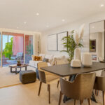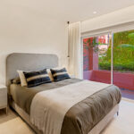 This fully renovated 3-bedroom ground floor apartment is situated in the esteemed Cabo Bermejo, a first-line development on the picturesque New Golden Mile between San Pedro and Estepona. This 5-Star gated community offers round-the-clock security, meticulously landscaped tropical gardens, 2 cascading outdoor pools, serene artificial lakes, a well-appointed gym, and a sauna area. The promenade runs directly in front of the complex, with charming restaurants and renowned 5-star hotels like 'Las Dunas' and 'ikos Resorts' within easy walking distance.