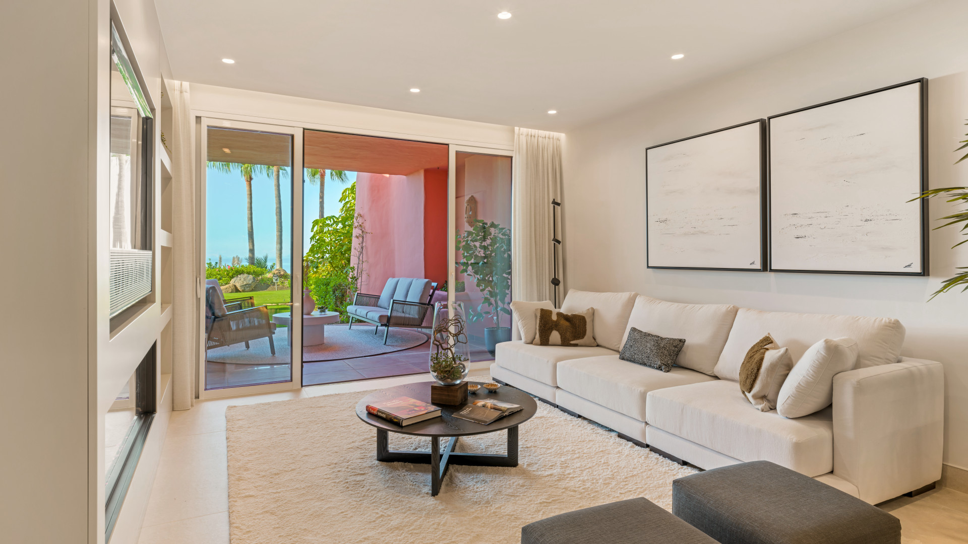 The apartment showcases a newly designed open kitchen and lounge area, meticulously curated by our interior designer to maximize appreciation of the unobstructed Mediterranean Sea views. Additional premium features include a Bang & Olufsen Sound System and an electric fireplace, enhancing the allure of this exquisite interior. The property also includes an underground parking space and a storage room.