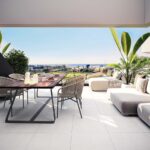 Exquisite contemporary duplex apartment with a private garden, featuring three bedrooms and three bathrooms, located in an exclusive gated residential complex on the New Golden Mile. Off-plan, with estimated delivery in 2026.
