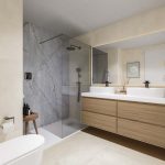 Inside the apartment, every detail has been meticulously designed to maximize natural light and comfort. The open-plan layout and sliding glass doors seamlessly connect the living room to the terrace, creating a bright and spacious atmosphere. The fully equipped kitchen, fitted with high-end appliances, is perfect for cooking enthusiasts. Additional features include built-in wardrobes in the entrance and a separate storage area for the washer and dryer, adding convenience and extra storage space. The bedrooms are generously sized, with the master suite featuring an elegant en-suite bathroom with a modern glass shower.