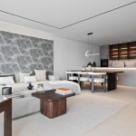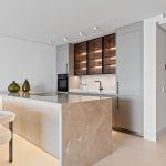 The apartment is ideally located, being no more than a 10-minute drive from both the town center of Estepona and Puerto Banus. Positioned on the first floor, this corner unit boasts a spacious open-plan living area, complete with a modern kitchen equipped with Siemens appliances. it includes a master bedroom with an en-suite bathroom, a guest bedroom with its own en-suite, and an additional guest bedroom with a separate bathroom.