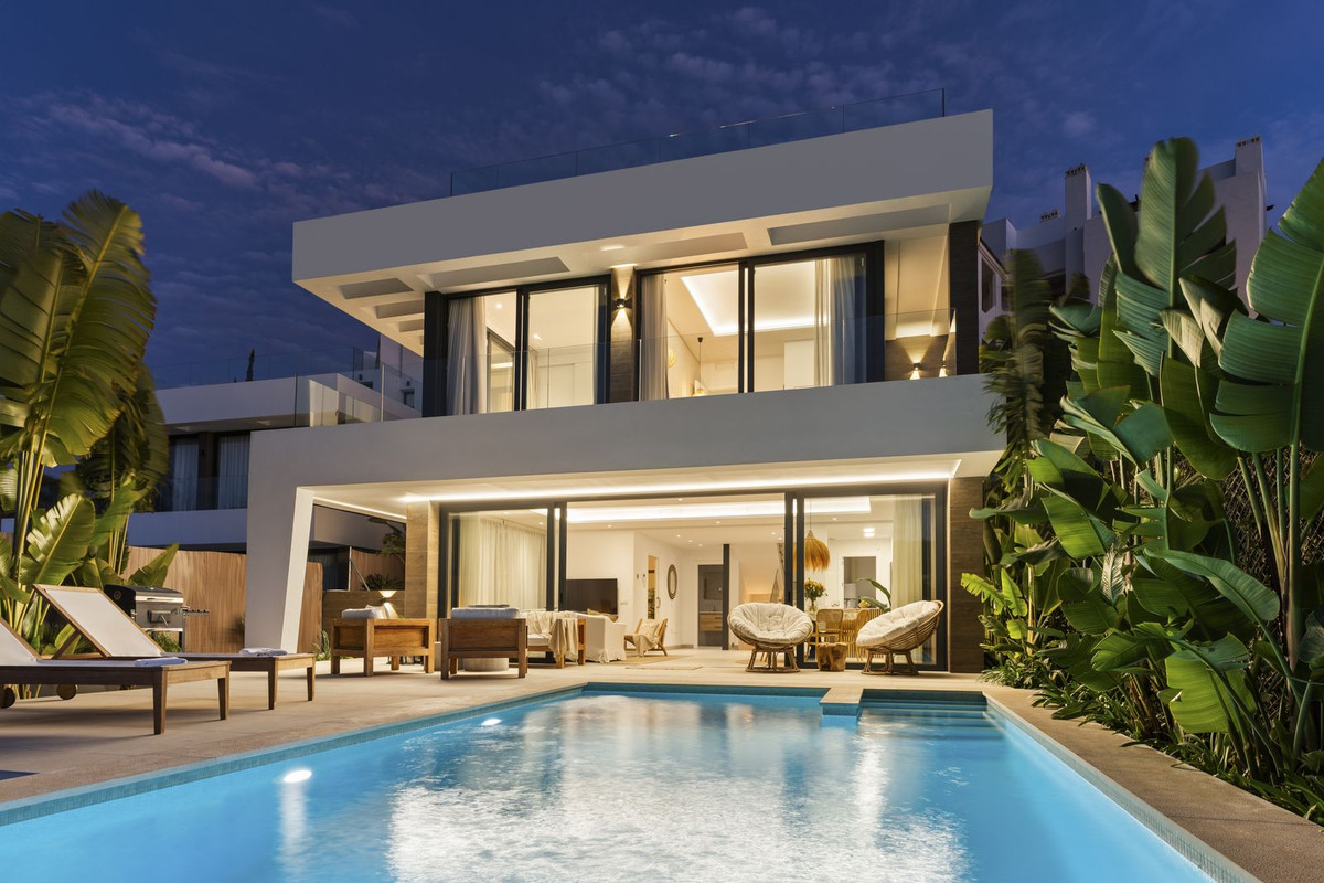 The villa is west facing located in La Resina Golf with mountain and golf views. It has been designed blending contemporary architecture with modern interiors and an open layout to enjoy indoor / outdoor living.