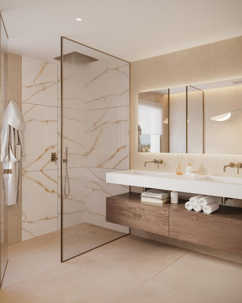 This villa has ample bedrooms and bathrooms exuding a cozy spaciousness, warmth and comfort. The modern kitchen seamlessly merges with the living area, creating a grand and luminous expanse, while expansive windows lead out to your private terrace and garden.