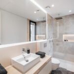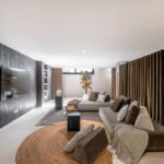 The villa’s open-plan living spaces flow effortlessly onto outdoor terraces, where a heated swimming pool, Jacuzzi, and a stylish BBQ area create a private oasis for relaxation and gatherings. For leisure and wellness, enjoy a fully equipped gym and a private cinema room.