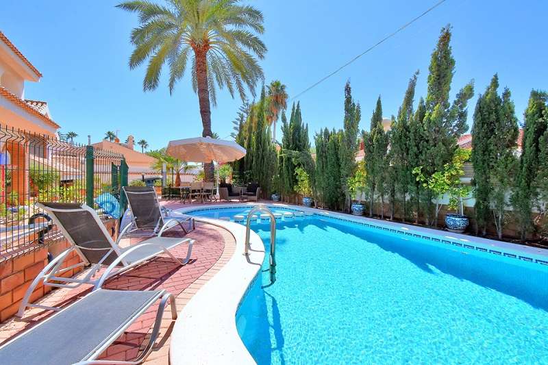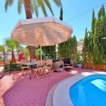 The villa combines charm and functionality, with quirky arched doors, a cosy fireplace, and air conditioning for year-round comfort.