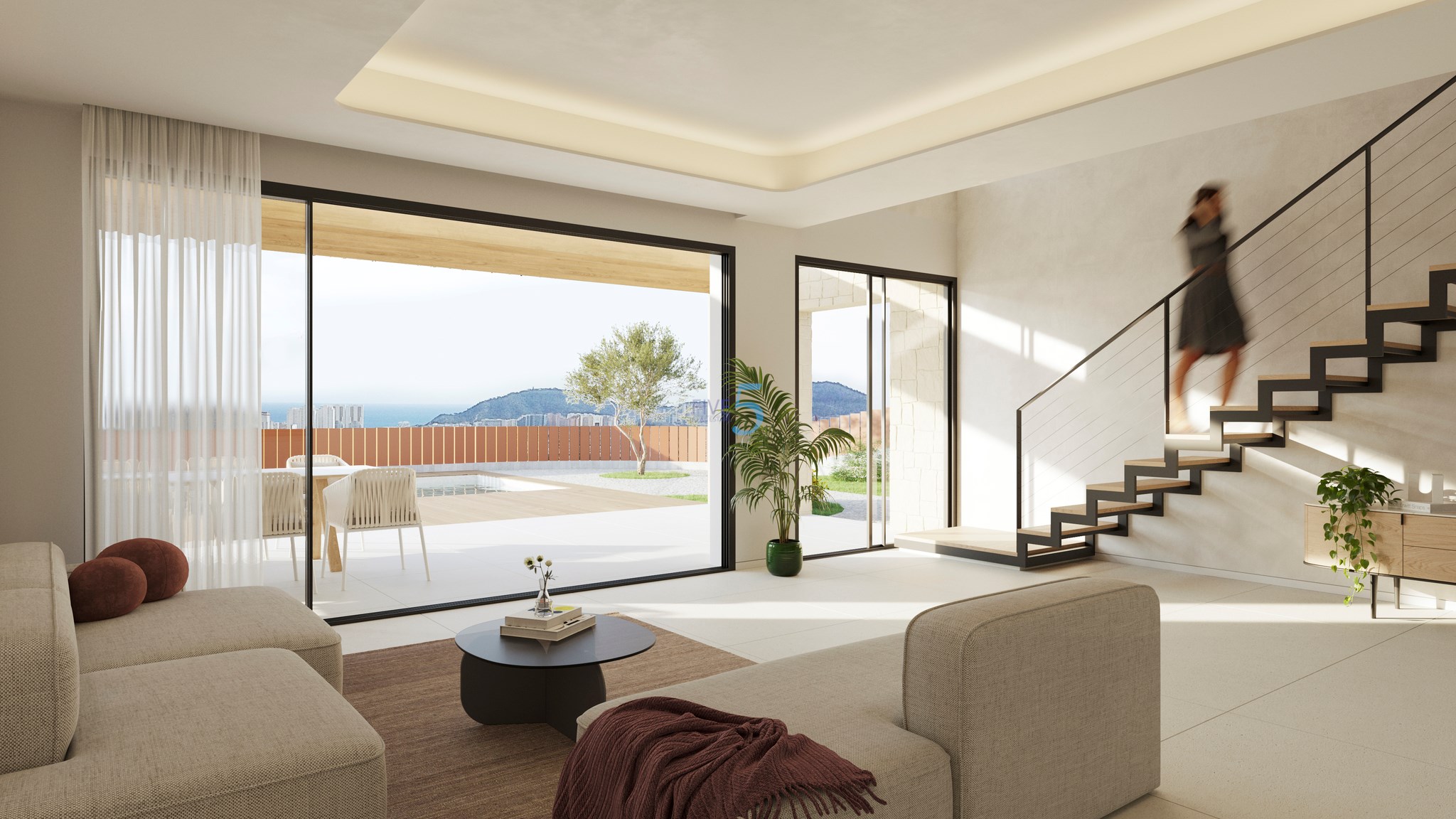 The exterior design of the villas in Finestrat is intended to maximize enjoyment of the natural surroundings. Each villa features a private garden, perfect for enjoying the outdoors and the Mediterranean climate. The spacious terraces offer an ideal space to relax and take in the stunning sea views. Additionally, the villas are equipped with pergolas that provide shade and an additional aesthetic touch to the outdoor space. The presence of a garage ensures convenience and security for residents' vehicles.