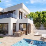 New build luxury villas made up of 11 independent villas in Finestrat, Costa Blanca. Located in Sierra Cortina, a quiet area surrounded by open countryside, with distant views of the mountains and the Mediterranean Sea. The complex is close to golf courses, marinas, luxury hotels, spa and services. Benidorm and its wonderful beaches are only 5 minutes away by car. Each property has 3 bedrooms and 3 full baths. Designed with an open plan concept, comprising a fully equipped kitchen, living room and dining room. The houses are built on plots ranging from 385 M2 to 540 M2. The large terraces and private gardens that surround each property allow the sun to enter every day of the year. Each villa has its own private pool, closed garage and basement. Included in the price: Fully equipped kitchen, with fridge and freezer, integrated dishwasher, island induction hobs, built-in extractor hood, raised oven and microwave. Lined cupboards with drawers, Complete bathrooms: vanity unit, mirror, shower screens and underfloor heating. Laundry room with washing machine in the basement. Parking space in the basement. Additional features: Waterfall and jacuzzi in pool. Spotlights inside the villa and lights in outdoor areas. Air conditioner. Electric blinds and home automation (Smart House).
