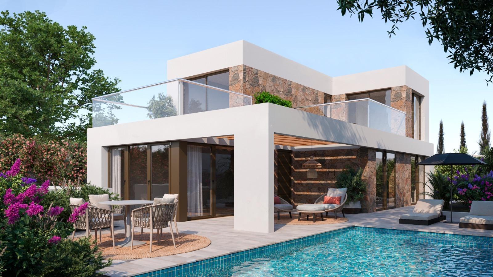 New Villas in Finestrat - Luxury, Nature and Sea Views Exclusive Residential in Sierra Cortina, Benidorm-Finestrat Discover this new luxury residential development in Sierra Cortina, Finestrat, one of the most exclusive areas of the Costa Blanca. This development offers 30 villas of avant-garde design, with options of semi-detached and detached villas, all of them with spectacular sea and mountain views. Located in a peaceful setting, yet close to all amenities, this development is ideal for those seeking privacy, comfort and access to Benidorm's best beaches and services. Modern Design and Spacious Living The villas have been designed in a contemporary style, optimising natural light and panoramic views. You will be able to choose from various models with options from 2 to 4 bedrooms, and some designs include basement with English patio, allowing the possibility of adding additional bedrooms. Each home features: 2 floors with private terraces with sea views. Private swimming pool and garden for your enjoyment. Garage on the plot, with space for your vehicle. Open concept kitchen integrated into the living room. Fitted wardrobes and storage space. Utility room for convenience. Privileged location on the Costa Blanca This exclusive residential is located in Sierra Cortina, one of the most prestigious areas of the Costa Blanca, surrounded by nature and with access to first class services. Only 3 km from the sea, this development is located next to two golf courses and close to the Terra Mitica theme park and the luxury hotel Asia Gardens. It also has fast connections to the main roads and airports in the region. Distances to Main Points of Interest Benidorm Beaches - 3 km. Villaitana and Sierra Cortina Golf Courses - 2 km. La Marina Shopping Centre - 2 km. Terra Mitica Theme Park - 1.5 km. Alicante Airport - 40 km. Live in an Exclusive Area with All Amenities Finestrat is a charming municipality in the Marina Baixa, located just a few minutes from Benidorm. Its combination of mountain and sea, together with its modern infrastructure, make it an unbeatable location to live or invest. Don't miss the opportunity to acquire a brand new villa in this privileged location. Contact us today for more information and to arrange a viewing.