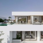 This exclusive complex in Finestrat includes 11 beautiful villas, divided into 3 different types and price ranges. The first 2 types of villas fall under this reference (GS1735) and differ in architectural style: ground floor, first floor & basement, or ground floor and basement. The surface of the plots varies between 468 m2 and 568 m2, while the built area varies between 336 m2 and 422 m2, depending on the villa type chosen. Each of these villas features a beautiful garden with a large swimming pool, with an area varying between 59 and 64 m2 depending on the specific design.