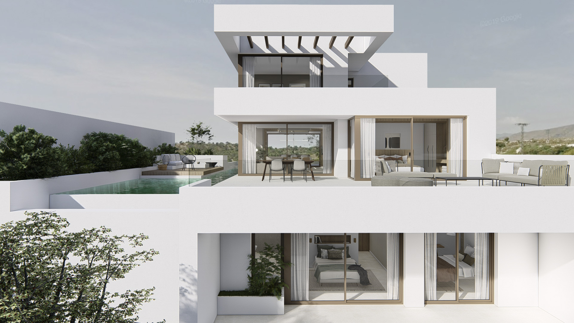 MODERN VILLAS WITH 3 BEDROOMS, 3 BATHROOMS AND A GARDEN WITH A BEAUTIFUL SWIMMING POOL IN FINESTRAT (ALICANTE - COSTA BLANCA)