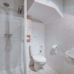 At the front of the property, a private terraced garden provides a welcoming entrance. Inside, the open-plan living and dining area is both air conditioned and equipped with a log burner, ensuring comfort throughout the seasons. The kitchen leads out to a rear private terrace, adding to the homes versatile outdoor spaces. Also on the ground floor is a double bedroom with air conditioning and a bathroom with shower, making it ideal for guests or those seeking single-level living.
