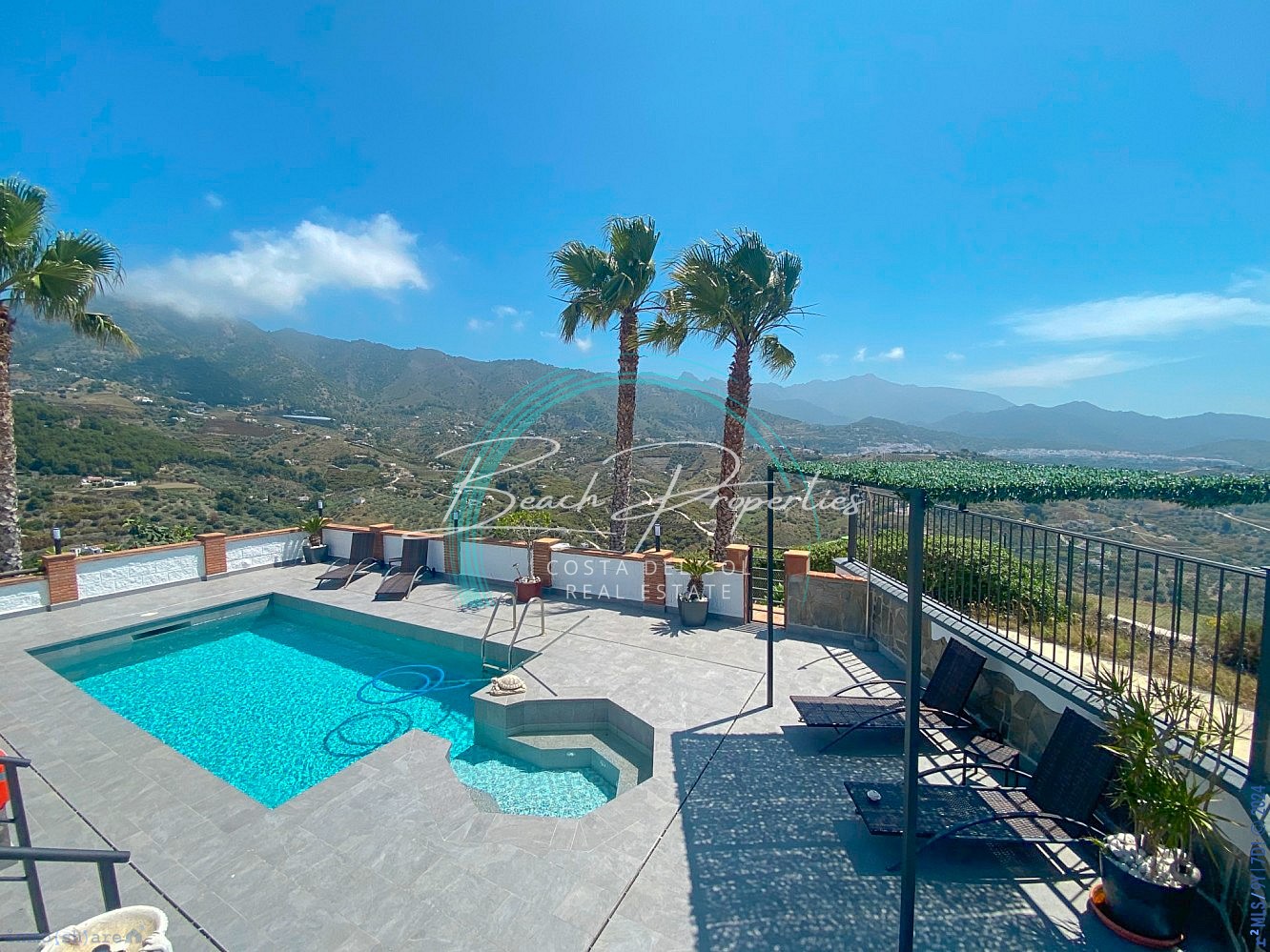Sea, mountains, and lush valleys adorned with olive, avocado, and fruit trees. This splendid villa, nestled near Frigiliana in the heartland of the Sierra de Tejeda y Almijara y Alhama, offers the promise of a life filled with natural beauty and tranquility. Private swimming pool featuring a rejuvenating Jacuzzi. Expansive terraces beckon you to bask in the sun and immerse in breathtaking views that stretch as far as the eye can see. The villa features two comfortable living room with fireplaces. Two well-equipped kitchen and also a great outside kitchen with fitted barbecue. Four spacious double bedrooms. Two of them share a bathroom, while the other two enjoy their own en-suite bathrooms. The villa's setting amid the Sierra de Tejeda y Almijara y Alhama is a testament to the stunning landscapes that make this area so special. Contact us today to make this dream villa your own and start living amidst the wonders of Frigiliana's hinterland!