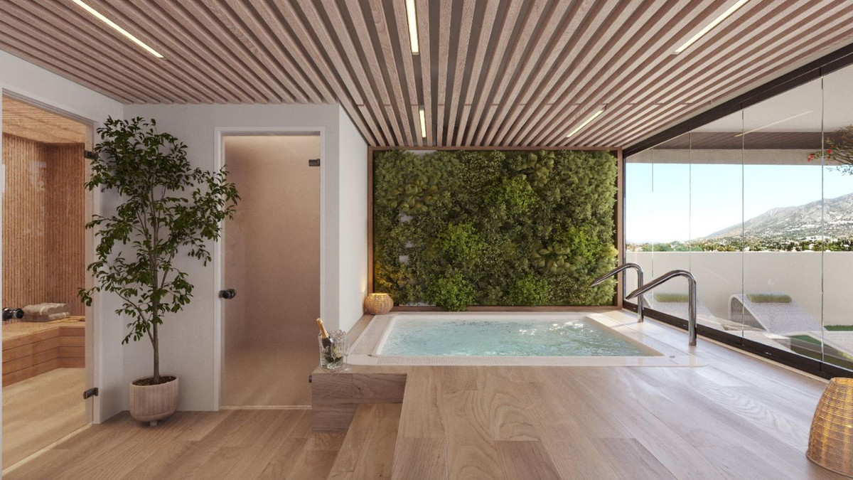 It also offers a range of shared amenities designed to make life more enjoyable. Residents can unwind in landscaped gardens, relax by the swimming pool, or stay active in the gym and wellness areas that include a spa and sauna. There are also coworking spaces for those who work remotely and even a private cinema for a more social lifestyle. One of the highlights is the rooftop sky infinity pool, where you can take in beautiful open views while enjoying the sunshine that the Costa del Sol is famous for.