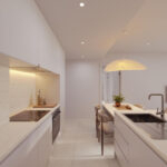 The development features a contemporary seven-storey building with 126 stylish homes designed to make the most of natural light and outdoor living. Apartments range from one to three bedrooms and include spacious south-facing terraces where you can enjoy sunny mornings, relaxed afternoons and warm evenings outdoors. The homes offer generous interior spaces with modern layouts that flow naturally between the living room, dining area and kitchen, creating bright and comfortable spaces ideal for both everyday life and entertaining.