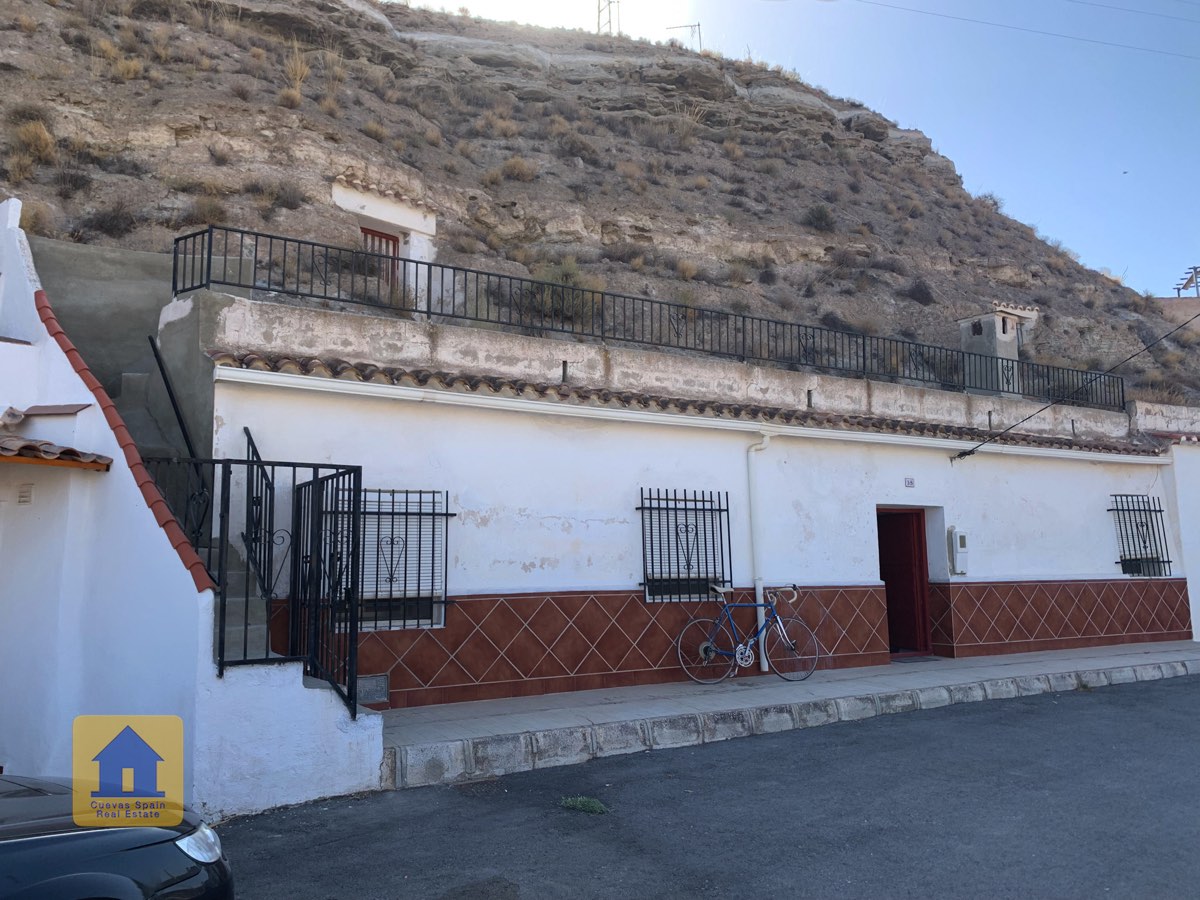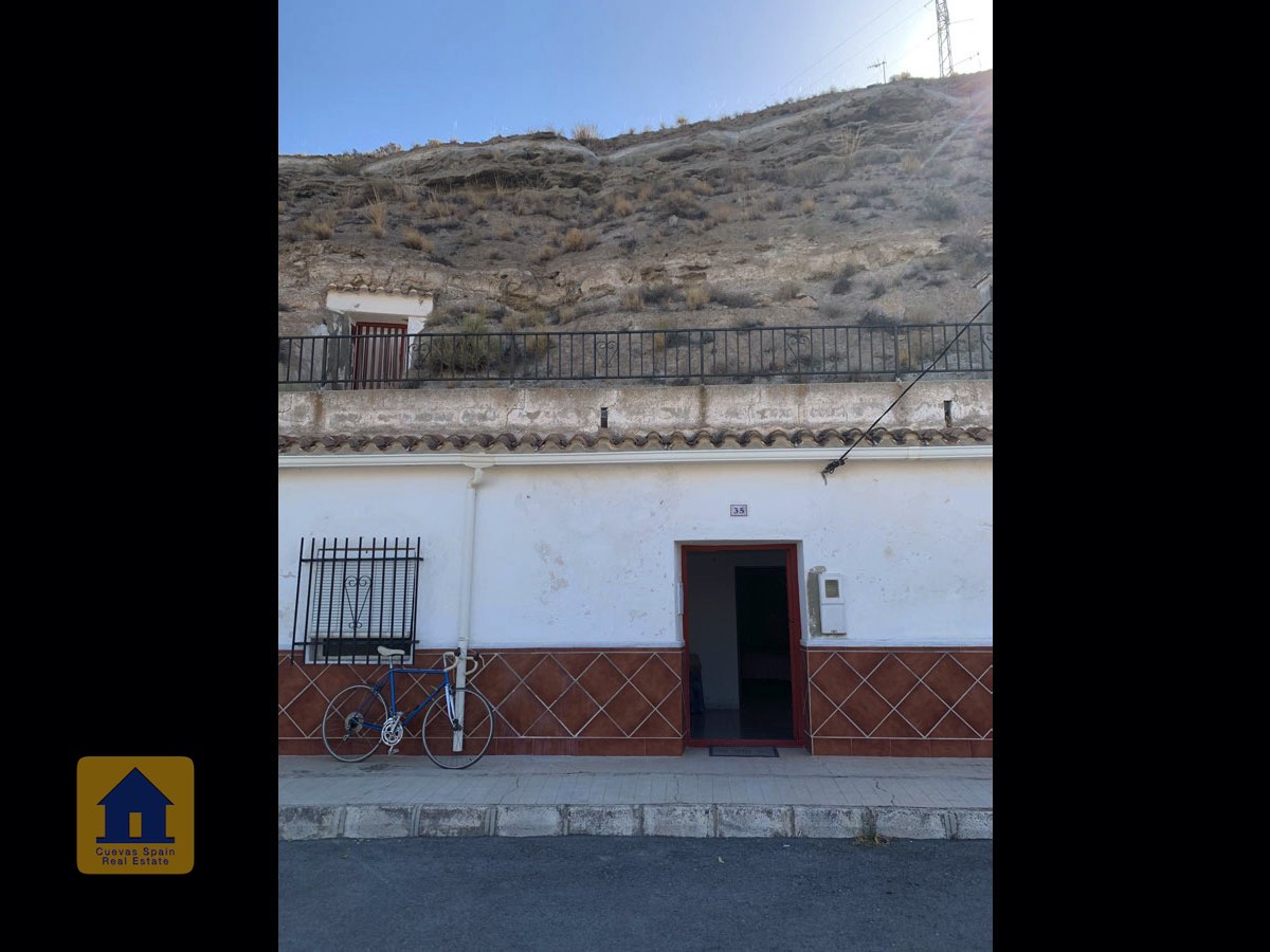This is a charming cave house in a great location on the quiet outskirts of the beautiful village of Galera, just 10 min walk to amenities. The cave has a roof balcony with stunning views to the west. There is an entrance hall, living room, kitchen, 2-3 bedrooms, bathroom and storage spaces. In front of the property is a sidewalk with parking space for two cars.